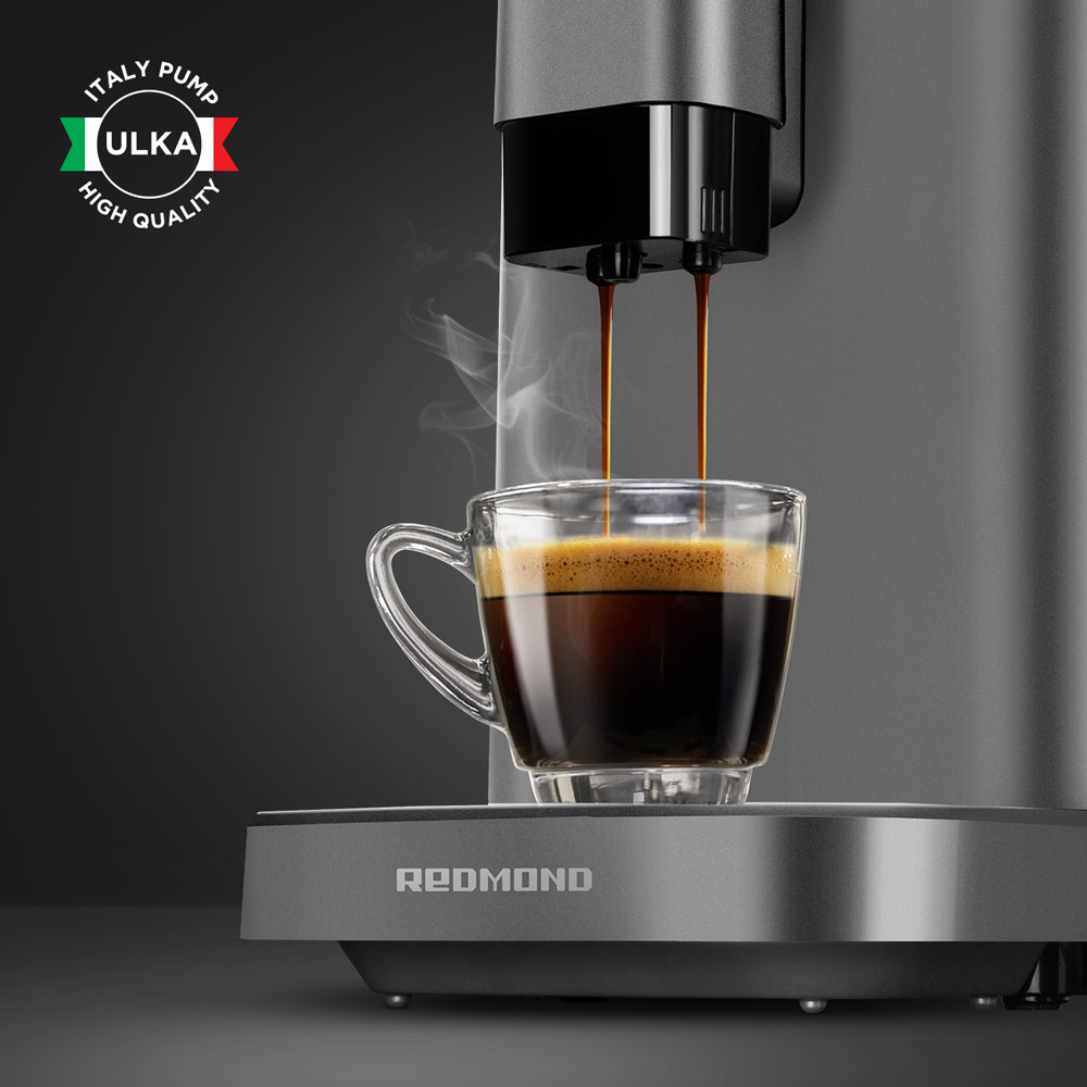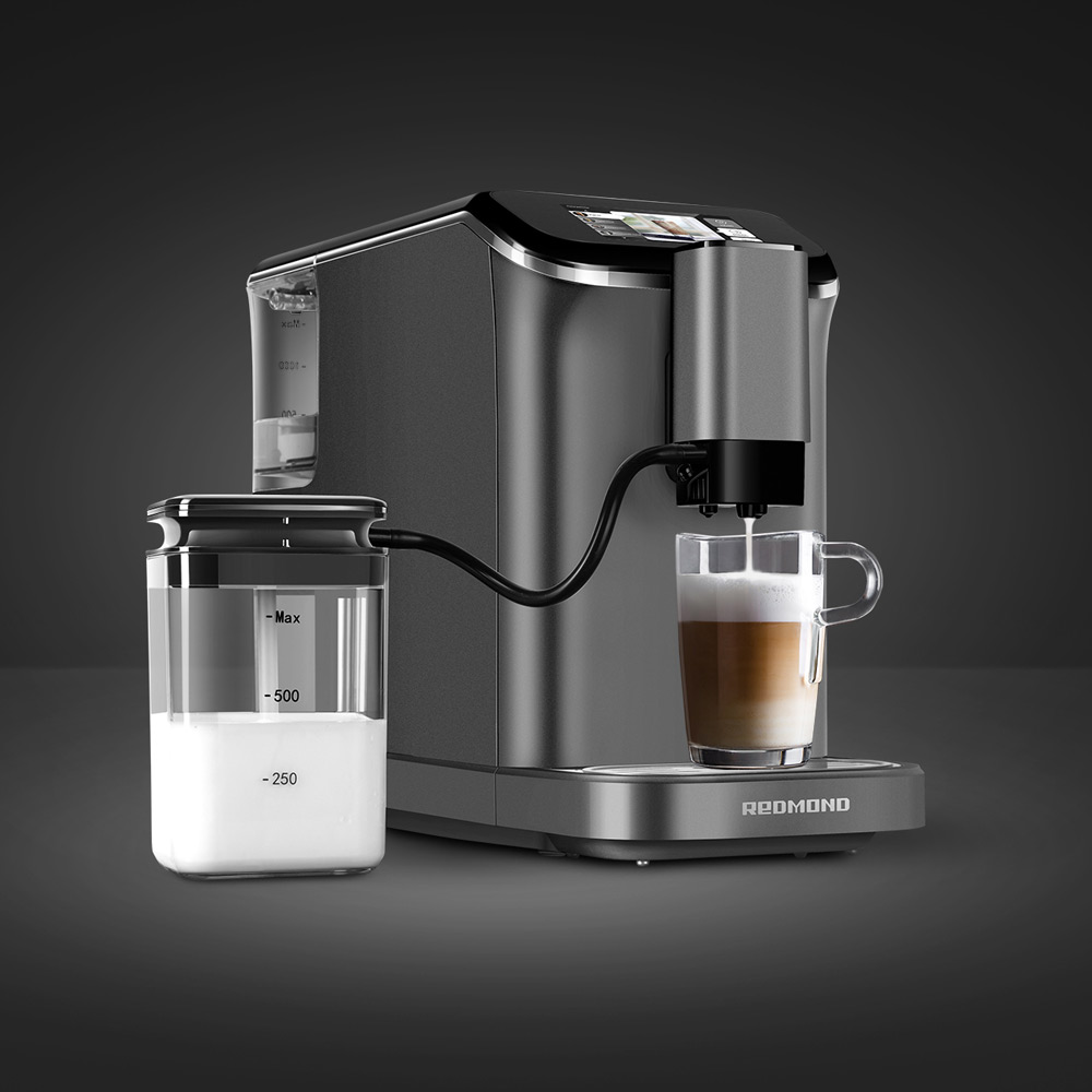 РЕДМОНД CM707 — универсальная кофемашина для приготовления классических напитков: эспрессо и двойного эспрессо, американо, капучино и латте. Подойдет для домашней и офисной кухонь, оборудована встроенной кофемолкой. Автоматически взбивает и подает молоко в чашку из специального резервуара. Помпа Ulka с давлением 19 бар обеспечит полную экстракцию вкуса и аромата зерен. Сенсорный дисплей даст подсказки при помощи видео ко всем этапам приготовления.
