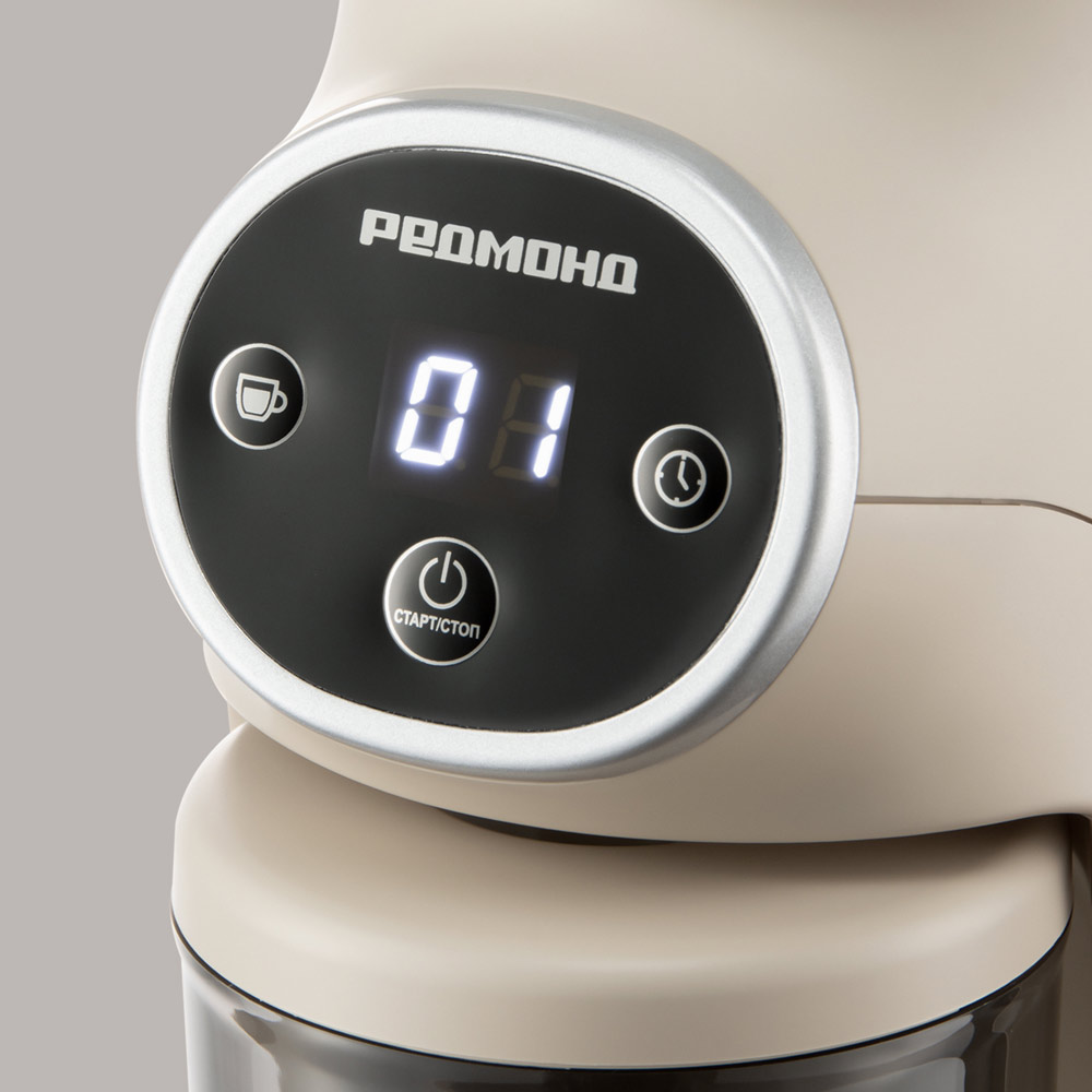 Жерновая кофемолка РЕДМОНД CG801 равномерно измельчит зерна для бодрящего напитка с насыщенным вкусом. 51 степень помола позволит экспериментировать и готовить кофе разными способами. Регулировать объем молотого кофе можно по времени и количеству чашек. Вы сможете приготовить напитки нестандартного объема или угостить сразу 10 человек. Контейнер для зерен вмещает 275 г кофе, а контейнер для молотых зерен — 100 г. Не придется постоянно очищать и наполнять емкости, тратя драгоценное утреннее время.