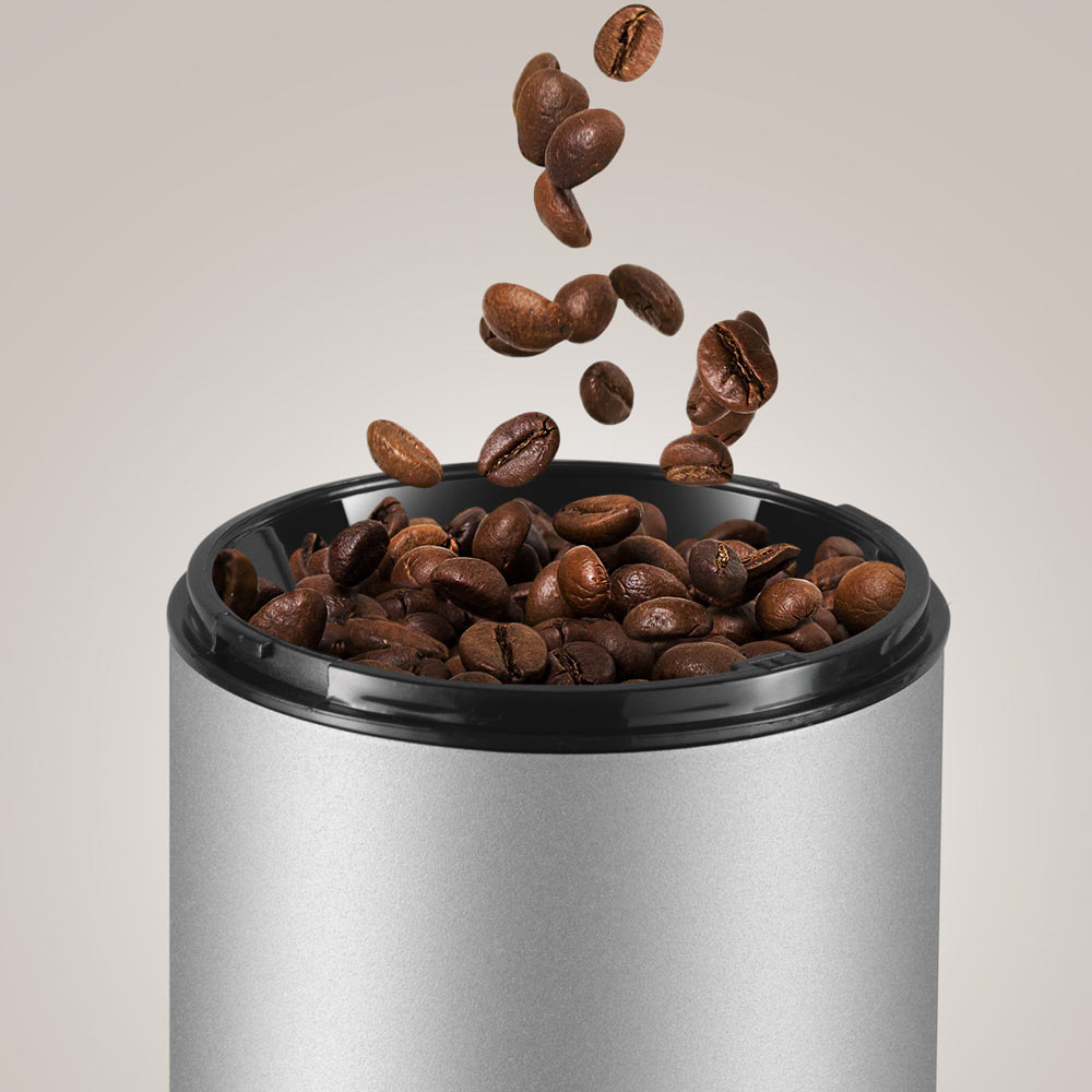 РЕДМОНД CG805 — стильная кофемолка в прочном металлическом корпусе с простым управлением одной кнопкой. Объема устройства хватит, чтобы за раз перемолоть 70 г кофейных зерен, специй или орехов. Прочные ножи из нержавеющей стали обеспечат качественный равномерный помол: все частицы будут одинакового размера. Система защиты от перегрева автоматически отключит прибор при критической нагрузке.