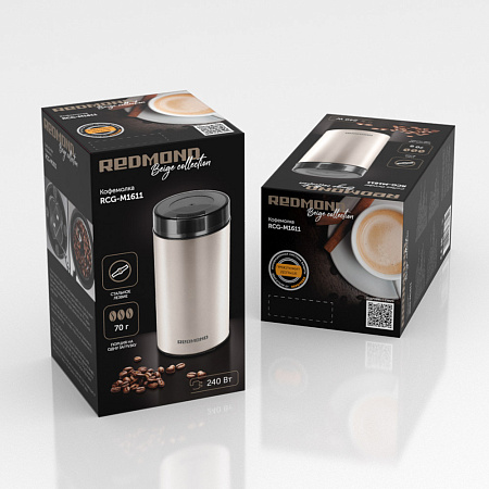 Кофемолка REDMOND RCG-M1611 – новая стильная модель с металлическим корпусом, выполненным в минималистичном дизайне. Кофемолка прекрасно подходит для измельчения не только кофейных зерен, но и орехов или специй.