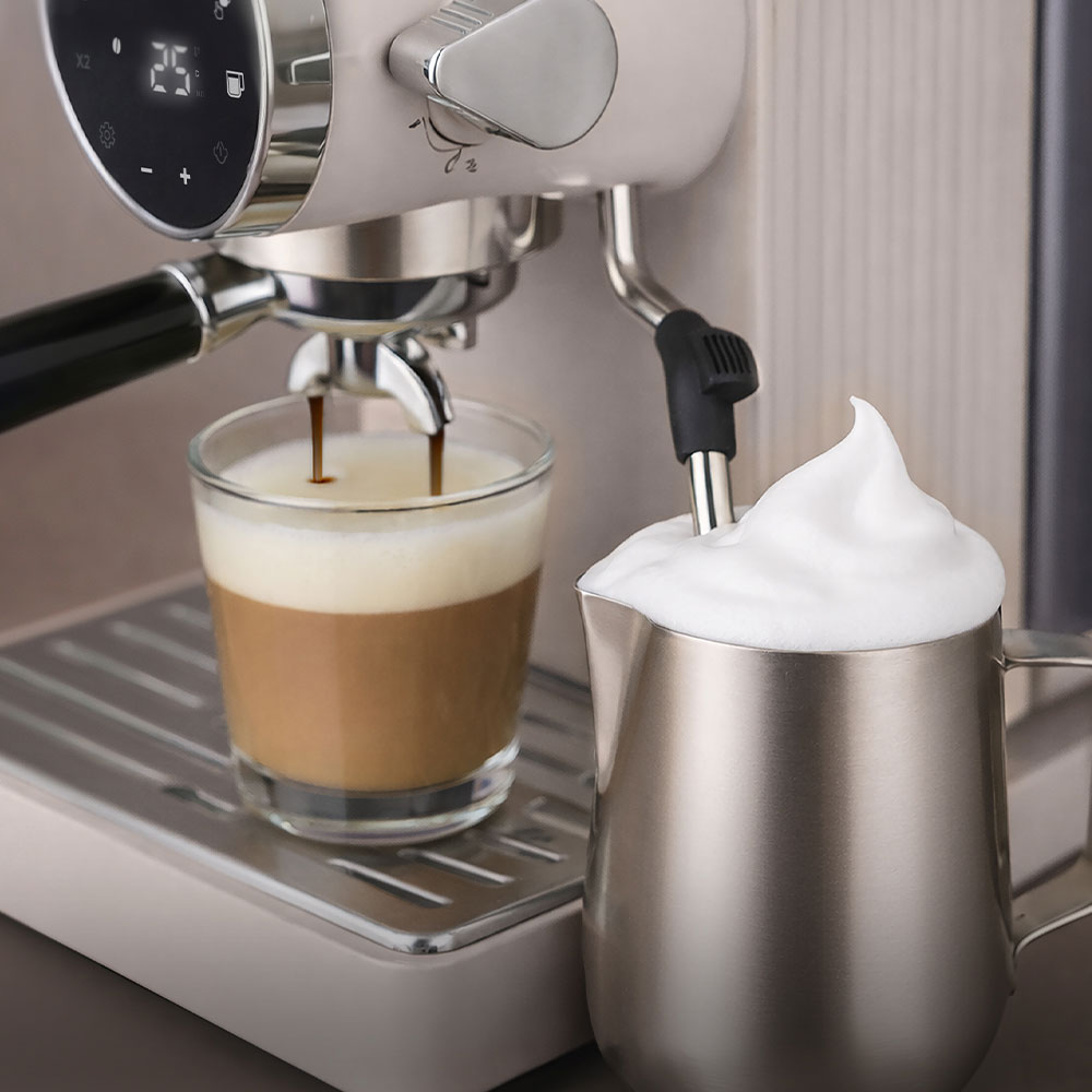 РЕДМОНД CM741 — кофейная станция в элегантном футуристическом дизайне. Благодаря профессиональной итальянской помпе, кофемолке и 30 уровням крепости вы получаете напиток с глубоким выразительным вкусом, как в итальянской кофейне. Станция поддерживает приготовление эспрессо, напитков с молоком и айс-кофе. Капучинатор позволяет взбивать молоко до однородной пены, а функция памяти объема и режим на две чашки упрощают процесс приготовления и экономят время. Кофейная станция CM741 — идеальное решение для тех, кто предпочитает осознанное приготовление с возможностью влиять на вкус кофе.