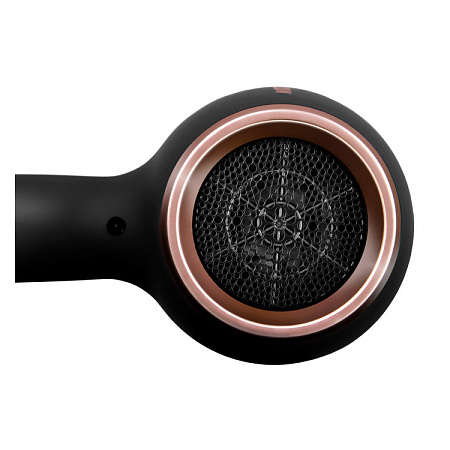 Фен из премиальной серии Chrome & Bronze выполнен в эксклюзивном дизайне: матовый черный корпус прибора украшен роскошными бронзовыми деталями. RF-CB526 станет заметным аксессуаром на вашем туалетном столике.