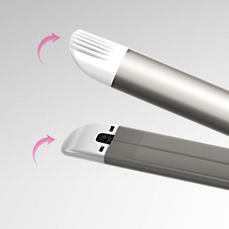 В отличие от металла, керамическое покрытие пластин нагревается равномерно по всей поверхности. Пластины стайлера хорошо прогревают, но при этом не пересушивают пряди. Гладкая керамика легко скользит по волосам, не цепляя и не повреждая их, – вам не придется обрабатывать одну прядь дважды, что сократит время укладки.