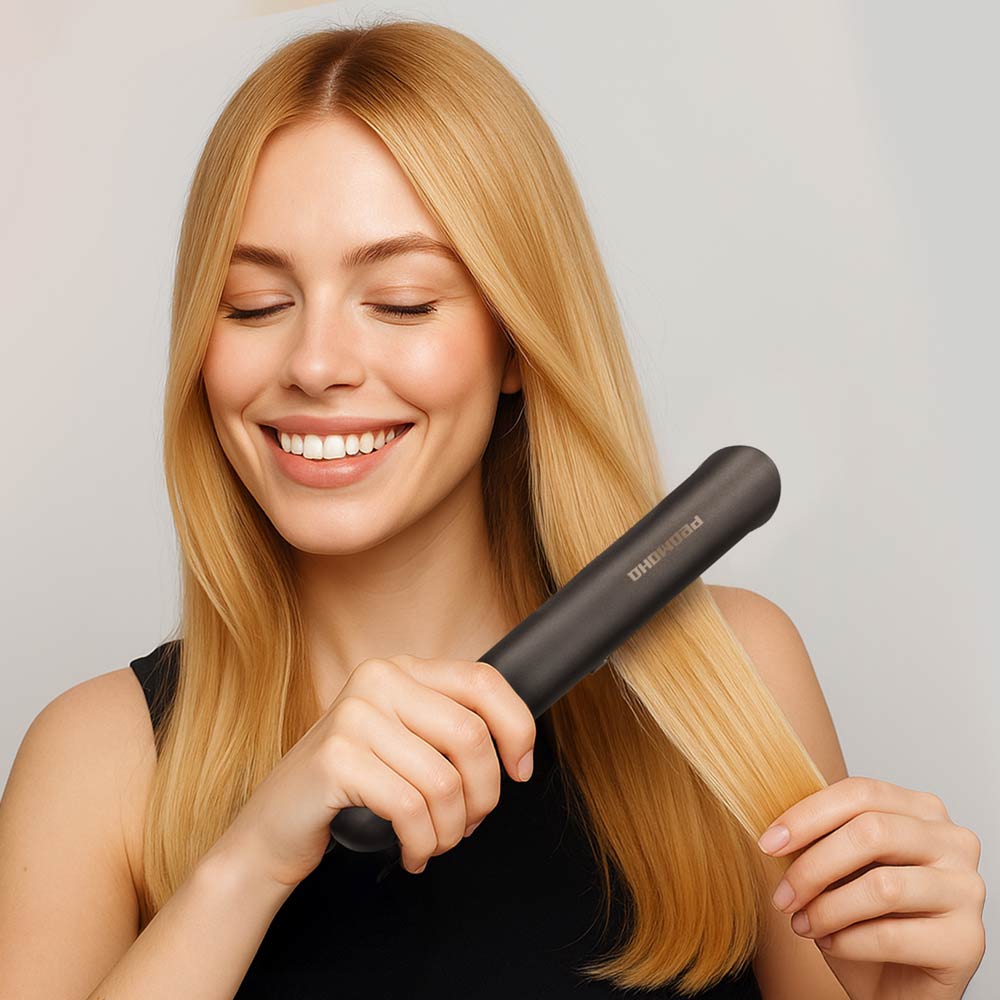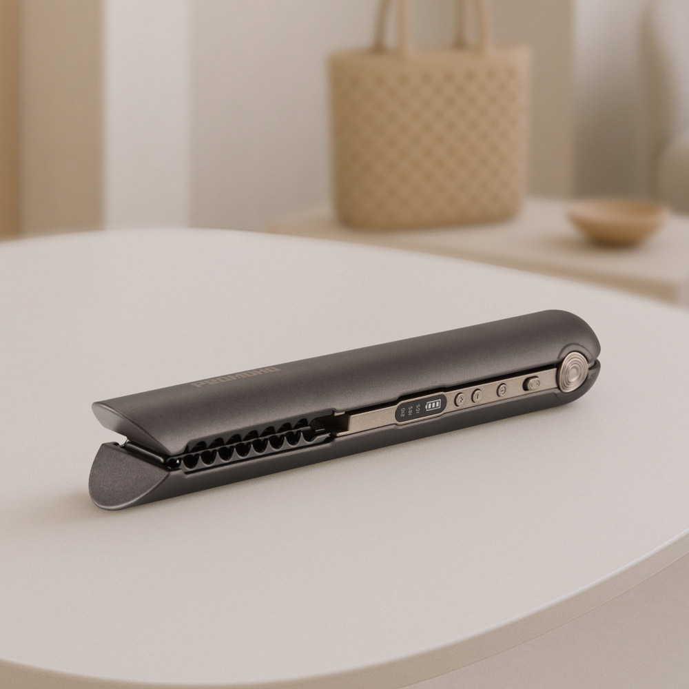 Беспроводной выпрямитель РЕДМОНД HS1722 в стильном серо-коричневом цвете с керамическими пластинами и 3 температурными режимами подойдет для ухода за любым типом волос. Кнопки блокируются от случайного нажатия, а вес составляет всего 332 г, поэтому устройство всегда можно взять с собой. Благодаря емкому аккумулятору выпрямитель не придется заряжать до 90 минут. В комплекте есть док-станция для зарядки и хранения.
