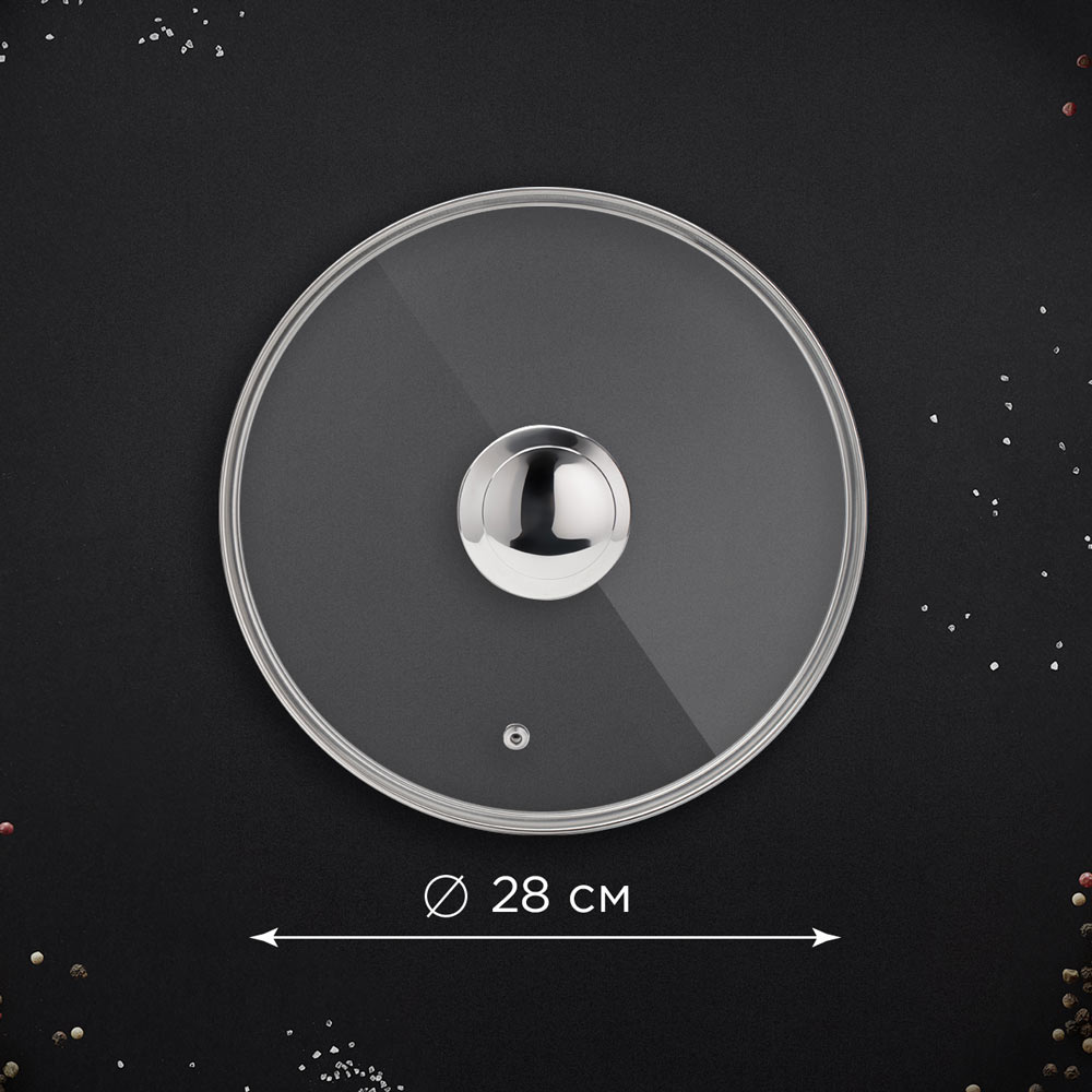 Крышка REDMOND PL5703 изготовлена из прочного жаростойкого стекла с элементами из нержавеющей стали. Имеет диаметр 28 см и оснащена удобной ручкой. Она идеально подойдет для сотейников, кастрюль и сковород аналогичного размера.