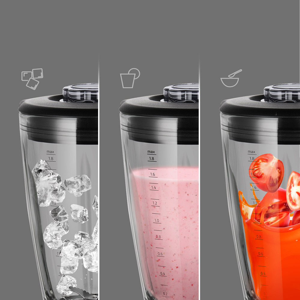 Мощный и компактный стационарный блендер RSB-M3407 позволит вам быстро и качественно измельчить и смешать ингредиенты для острых и сладких соусов, фруктовых и молочных коктейлей, спортивного и детского питания.