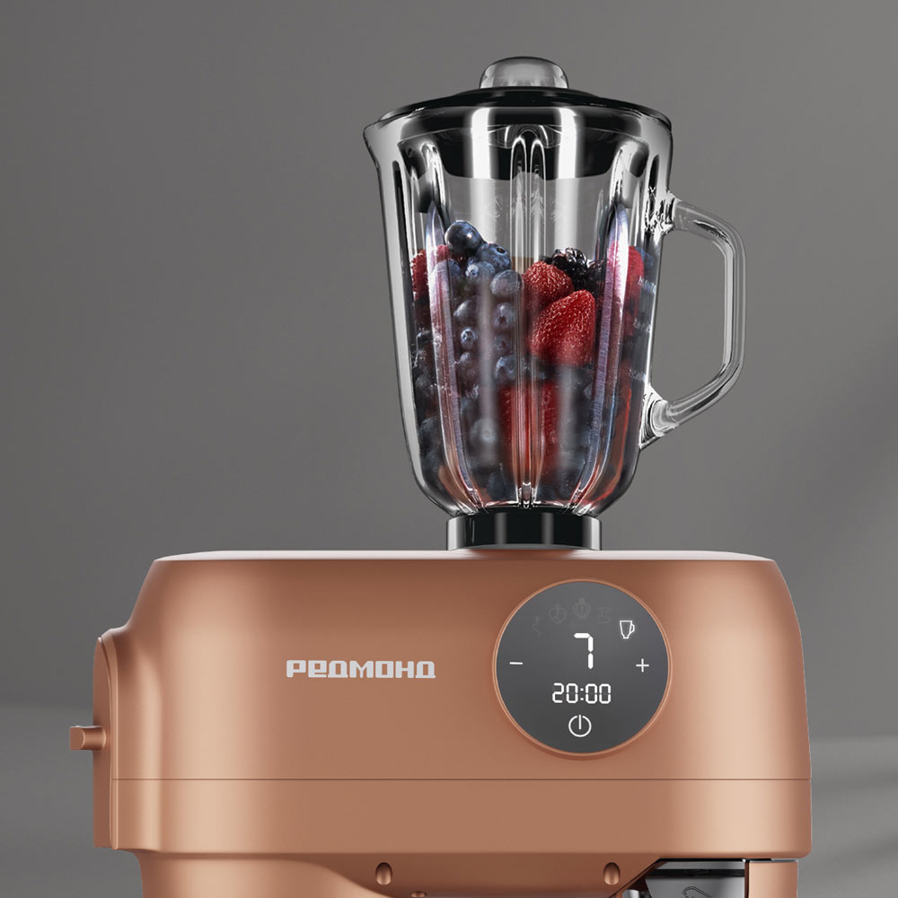 Кухонная машина РЕДМОНД FM615 — многофункциональный прибор с сенсорным управлением мощностью 1800 Вт для приготовления пищи дома. Прибор отличается устойчивостью и надежностью. В комплекте более 10 насадок для нарезки и измельчения, приготовления фарша, взбивания, замешивания теста. Подойдет вам, если семья большая, а готовите вы часто и много.
