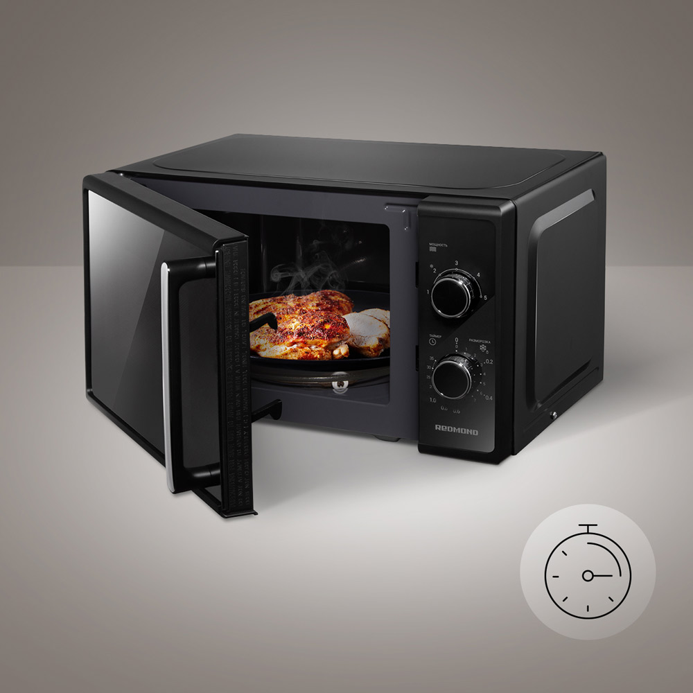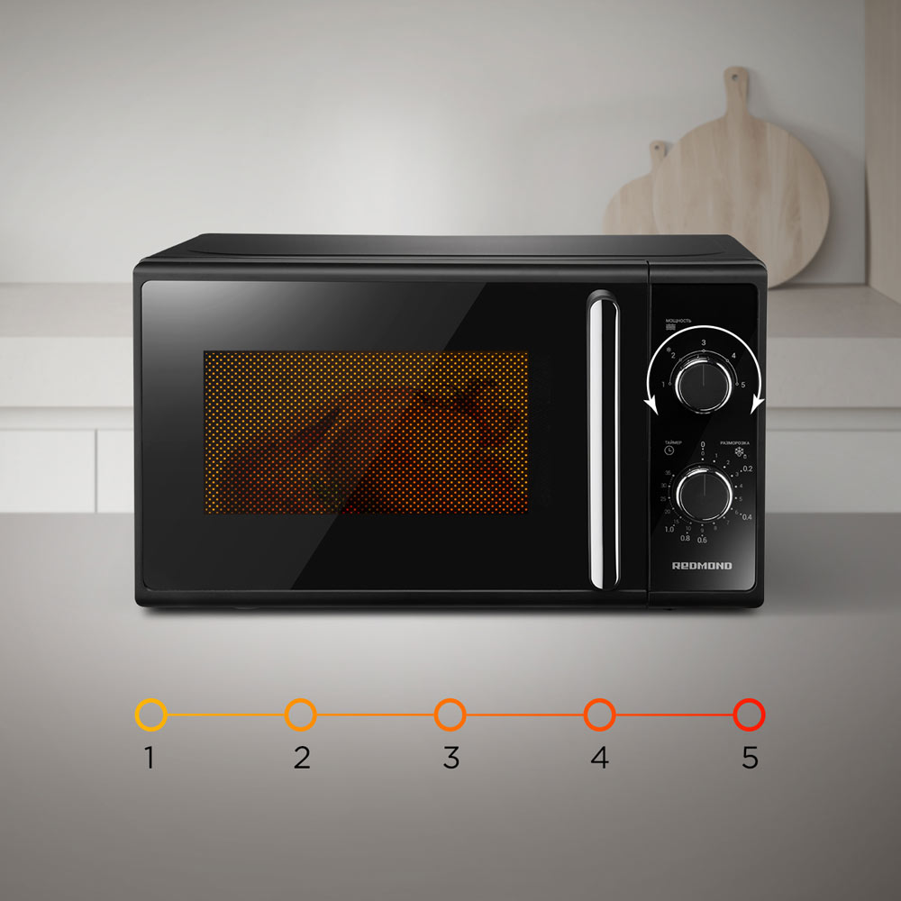 REDMOND MW2900 — стильная и современная микроволновая печь с компактной камерой и механическим управлением. Оборудована 2 регуляторами, открывается ручкой. Имеет 5 уровней мощности для размораживания, кипячения и подогрева продуктов, а также встроенный таймер от 1 до 35 минут.