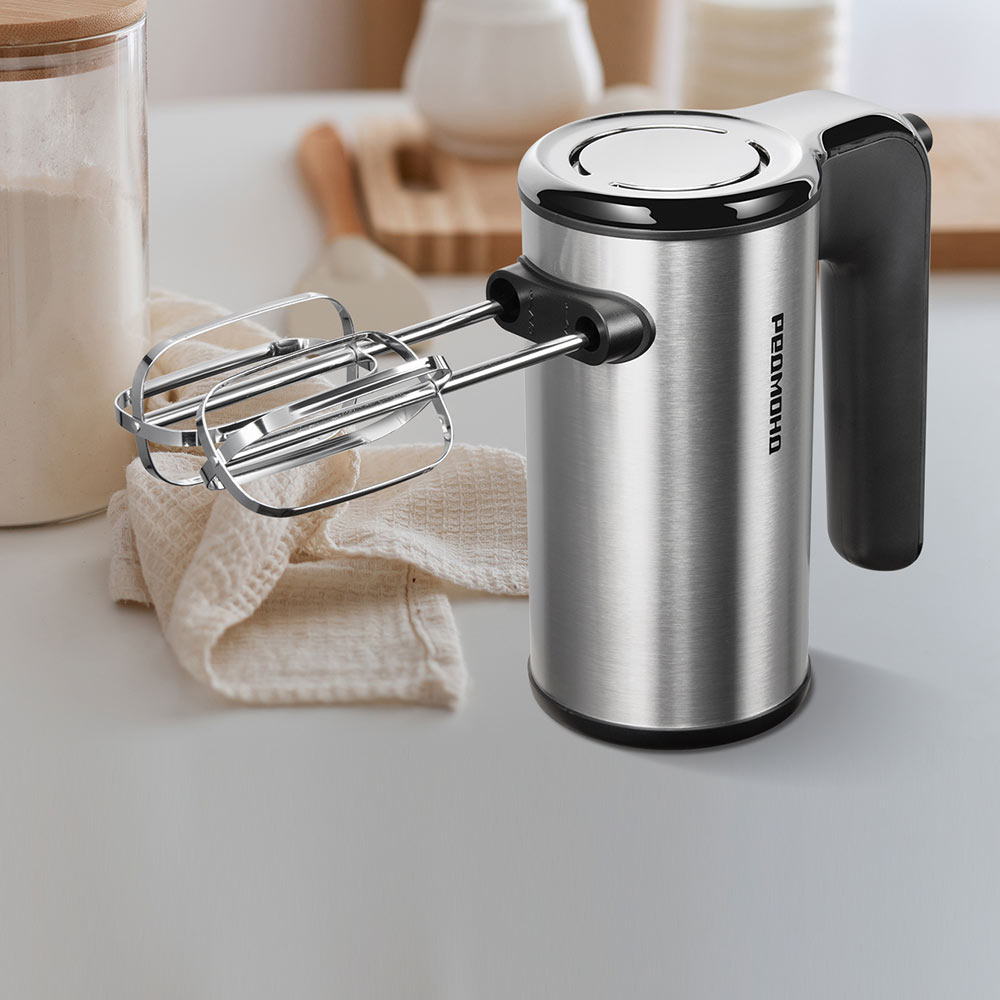 Миксер РЕДМОНД MH2801 поможет вам без особых усилий создать настоящий кулинарный шедевр. Устройство работает на 5 различных скоростях, что позволяет замешивать тесто, взбивать омлет и делать сытные соусы. Корпус прибора изготовлен из нержавеющей стали, материал обеспечивает надежность устройства. А защита двигателя от перегрева — долговечность мотора.