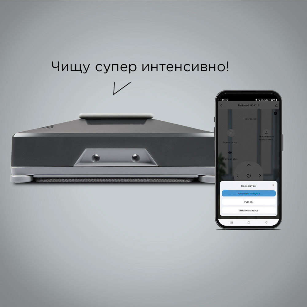 Робот-мойщик РЕДМОНД W2401S с 4 распылителями подойдет для очистки обычных и панорамных окон, витрин, стеклянных перегородок, кафеля и зеркал. Управляйте им с помощью приложения REDMOND Home или пульта ДУ, чтобы добиться чистоты без разводов. Робот имеет 4 режима планирования маршрута и голосовой помощник с различными вариантами озвучки. А надежная защита от падения предотвратит поломку или выход прибора из строя.