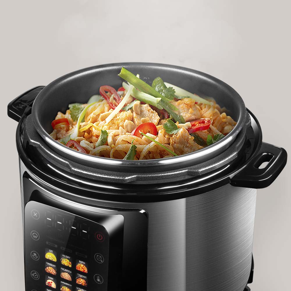 Мультиварка-скороварка РЕДМОНД MP111 готовит блюда под давлением, что ускоряет процесс в несколько раз. 14 автопрограмм облегчат использование прибора и помогут сэкономить время на готовке. А чаши объемом 6 л хватит, чтобы приготовить ужин на большую семью или компанию гостей. Имеет 4 уровня защиты: они гарантируют безопасность использования.