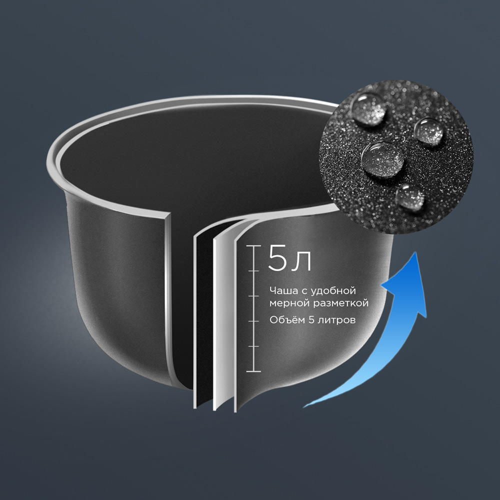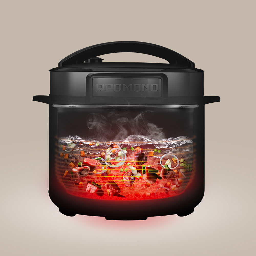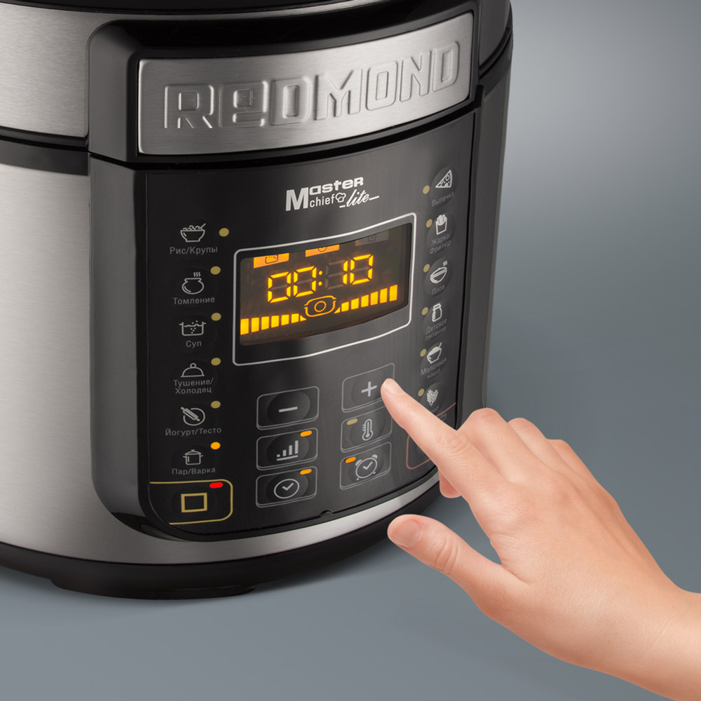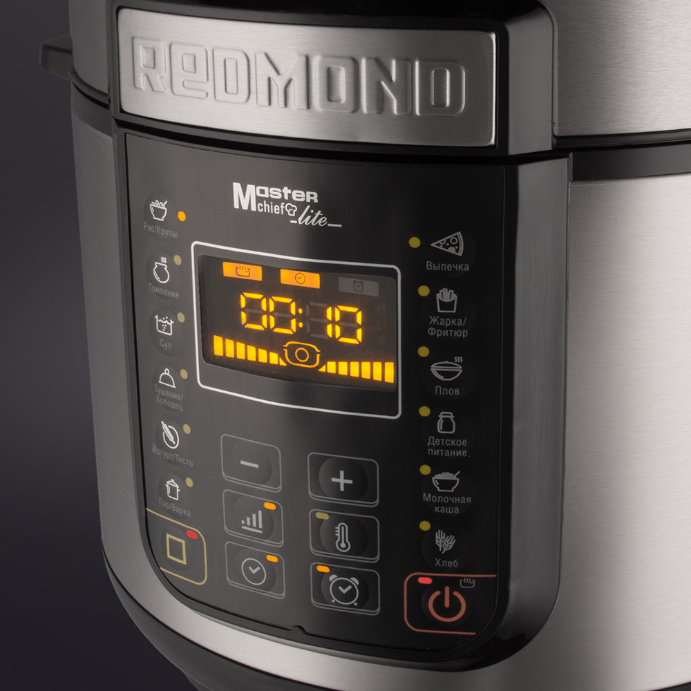 РЕДМОНД RMC PM381 — мультиварка скороварка для приготовления еды на каждый день. Система безопасности из 4 уровней контроля давления, функция МАСТЕРШЕФ ЛАЙТ для изменения настроек в процессе и автоматический подогрев делают процесс приготовления гибким и безопасным. RMC PM381 работает как скороварка, мультиварка и медленноварка, сохраняя максимум полезных веществ и насыщенный вкус продуктов.