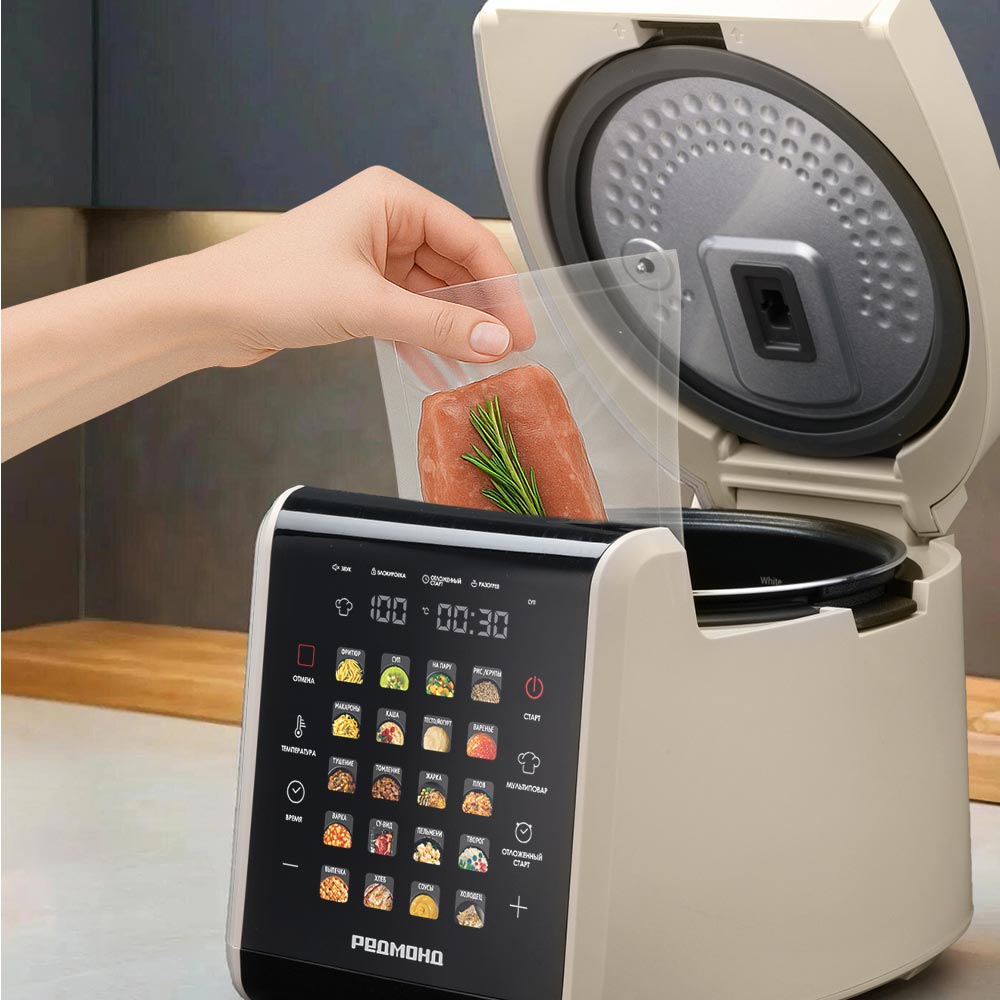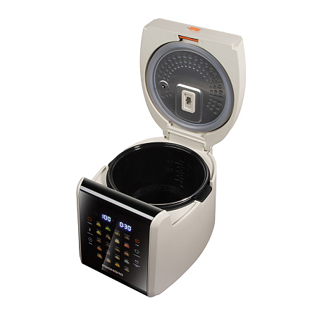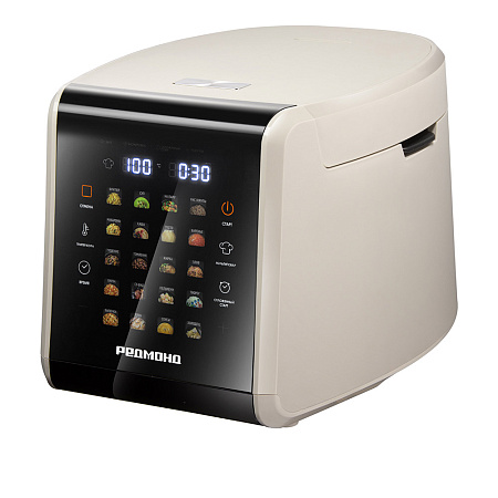РЕДМОНД MC105 — мультиварка в стильном современном корпусе с 22 автоматическими программами, 3D-нагревом и интуитивно понятной сенсорной панелью нового поколения. Управлять ей максимально комфортно: достаточно прикоснуться к яркой иконке с нужным режимом. Керамическая чаша с антипригарными свойствами оснащена удобными ручками — ее легко вынимать из корпуса, чтобы очистить или убрать в холодильник.