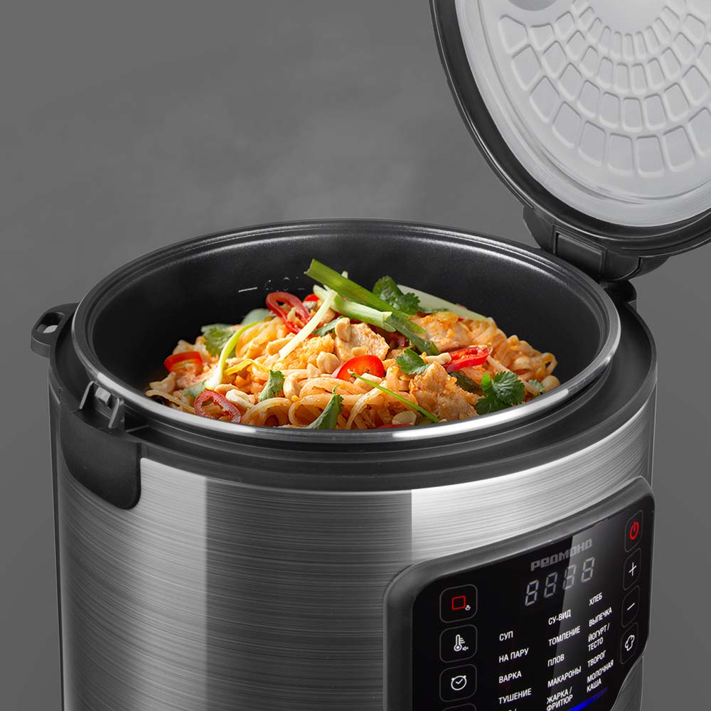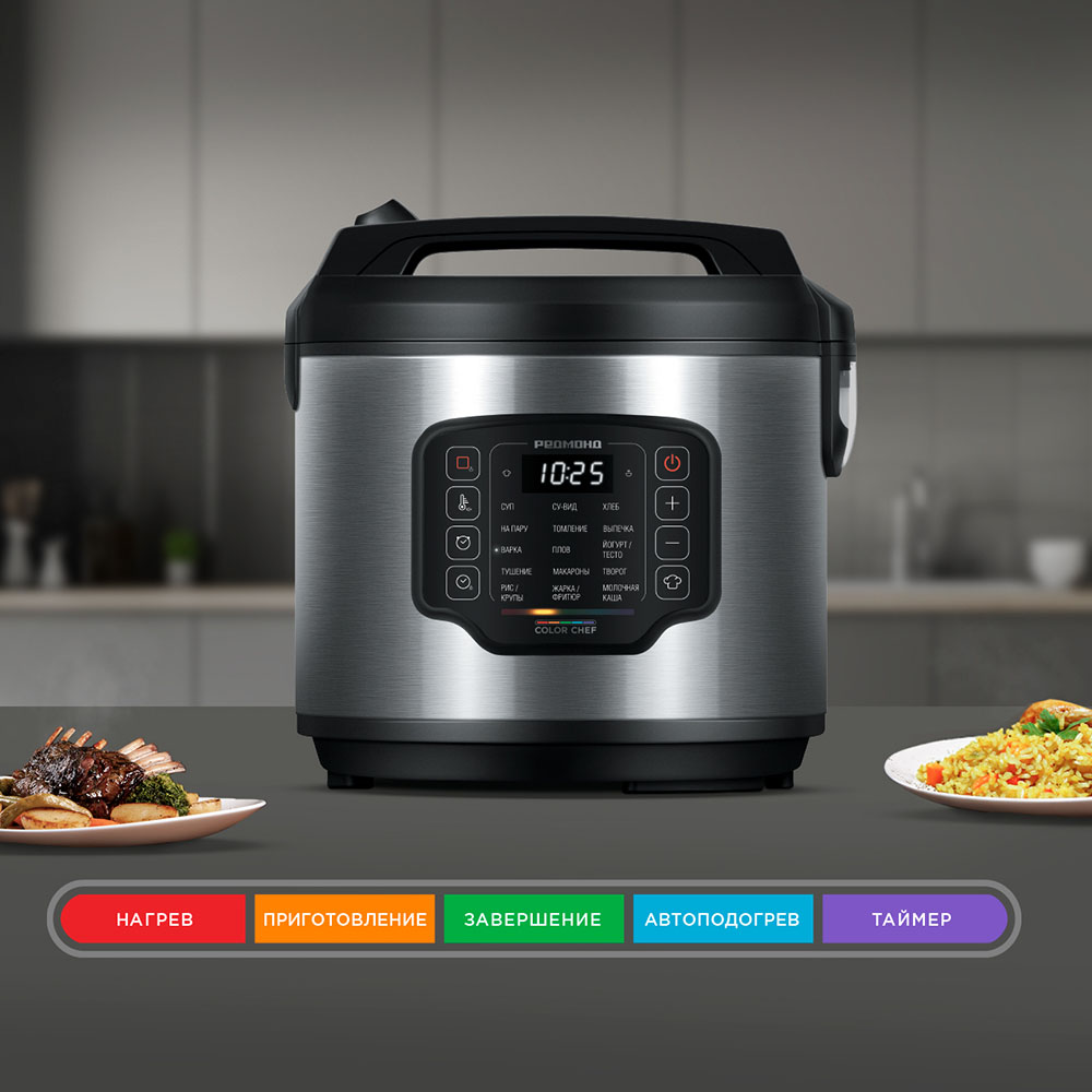 РЕДМОНД MC108 — мультиварка с интуитивно понятным сенсорным управлением и 17 автоматическими программами. Она упростит готовку и станет настоящей находкой для тех, кому тяжело разобраться в настройках современной техники. Чаша с антипригарным покрытием, выполненным по японской технологии DAIKIN®, легко очищается как вручную, так и в посудомойке.