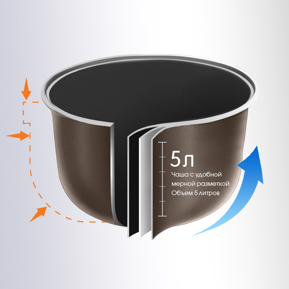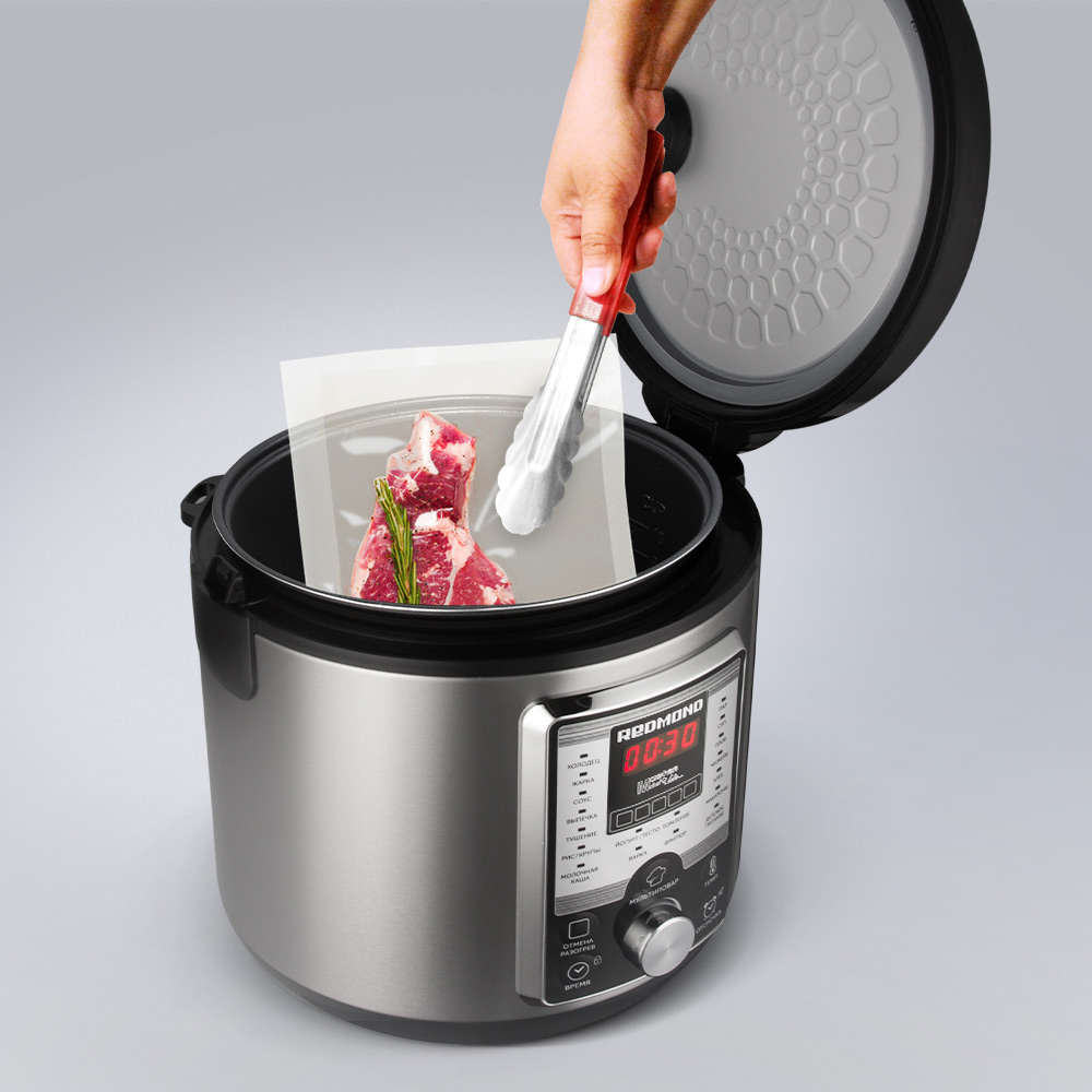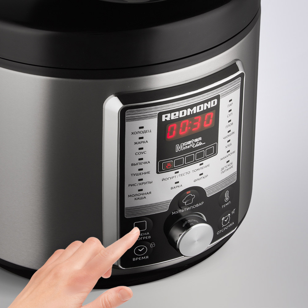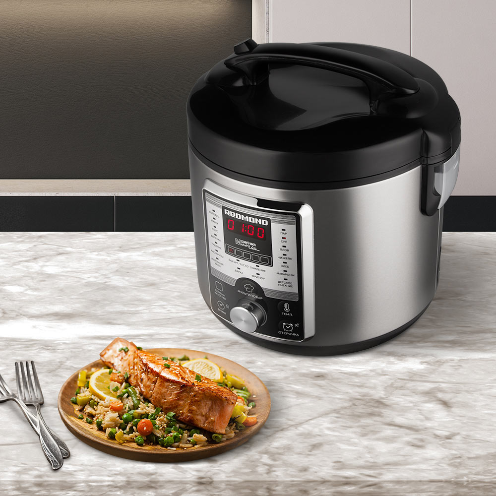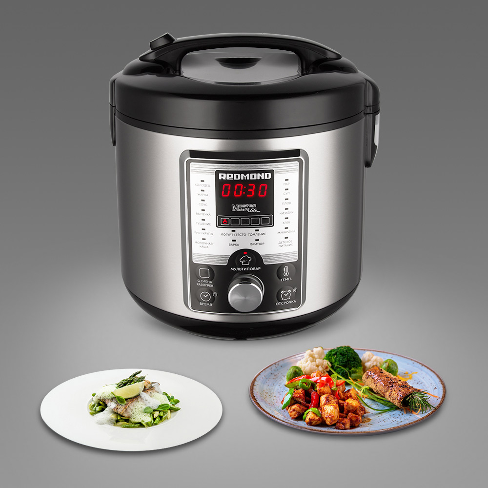 РЕДМОНД RMC-M37 – современный прибор с функцией автоматического приготовления блюд. Универсальная мультиварка не только сэкономит ваше время, но во многом заменит несколько кухонных устройств, в том числе, плиту, духовку, фритюрницу, пароварку и другие приборы.