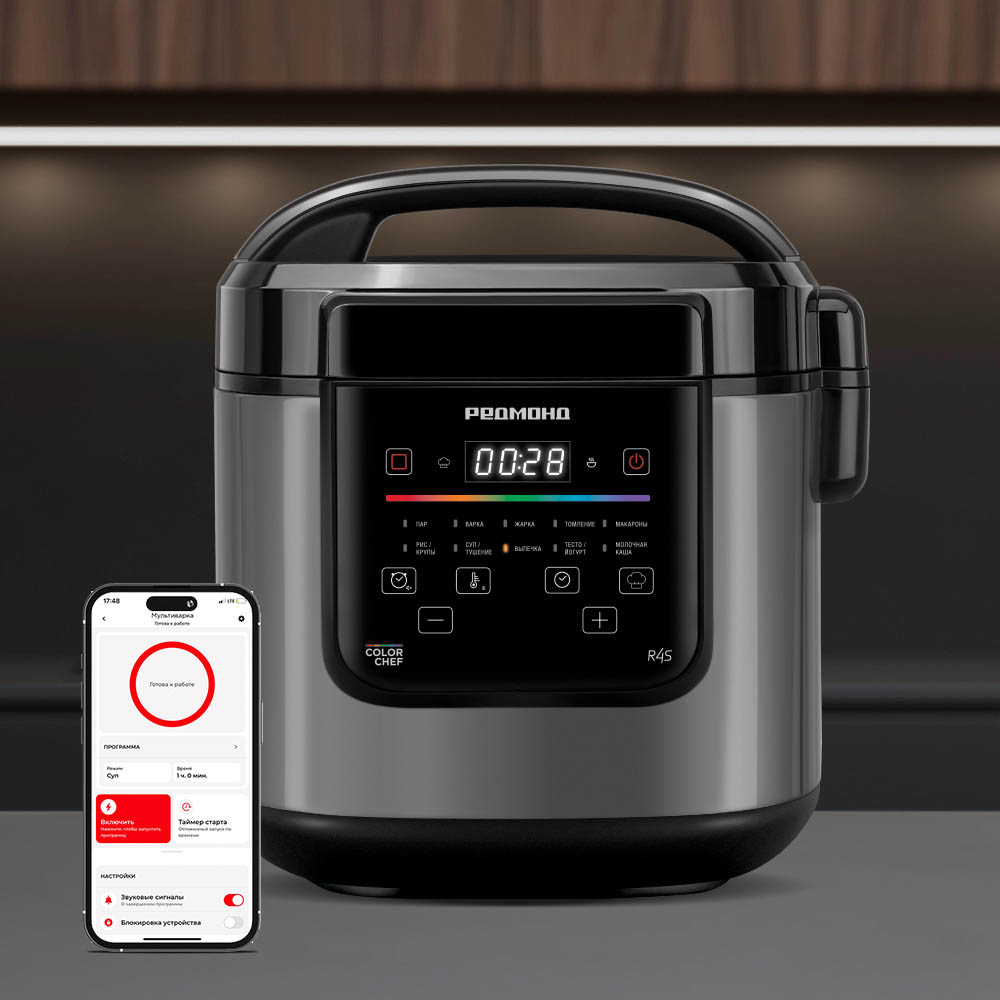 Вам не нужно тратить время и загромождать память вашего смартфона множеством приложений для разных видов техники — единое приложение R4S REDMOND позволит управлять всеми приборами из одного удобного интерфейса.