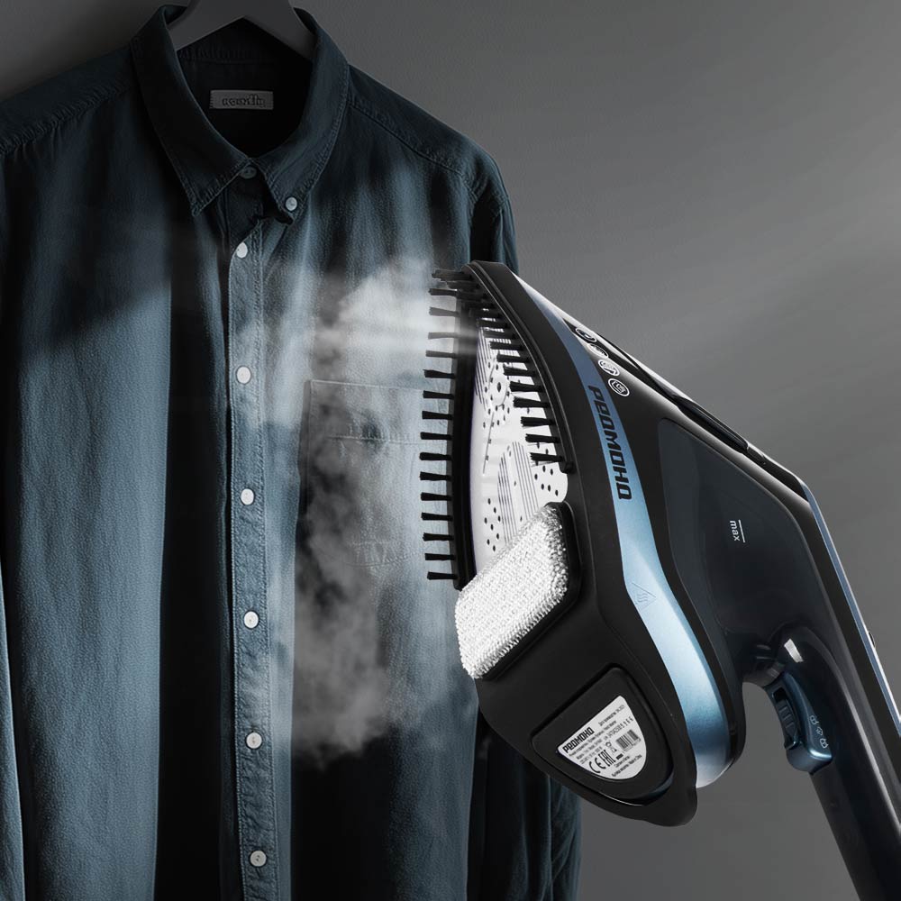 РЕДМОНД SH1640 с постоянным паром 45 г/мин гладит и отпаривает — он поможет быстро привести в порядок одежду. 2 режима подачи пара позволяют ухаживать как за деликатными, так и за обычными тканями. Подошва с качественным керамическим покрытием обеспечит идеальное скольжение, а насадка-щетка — удаление ворсинок.