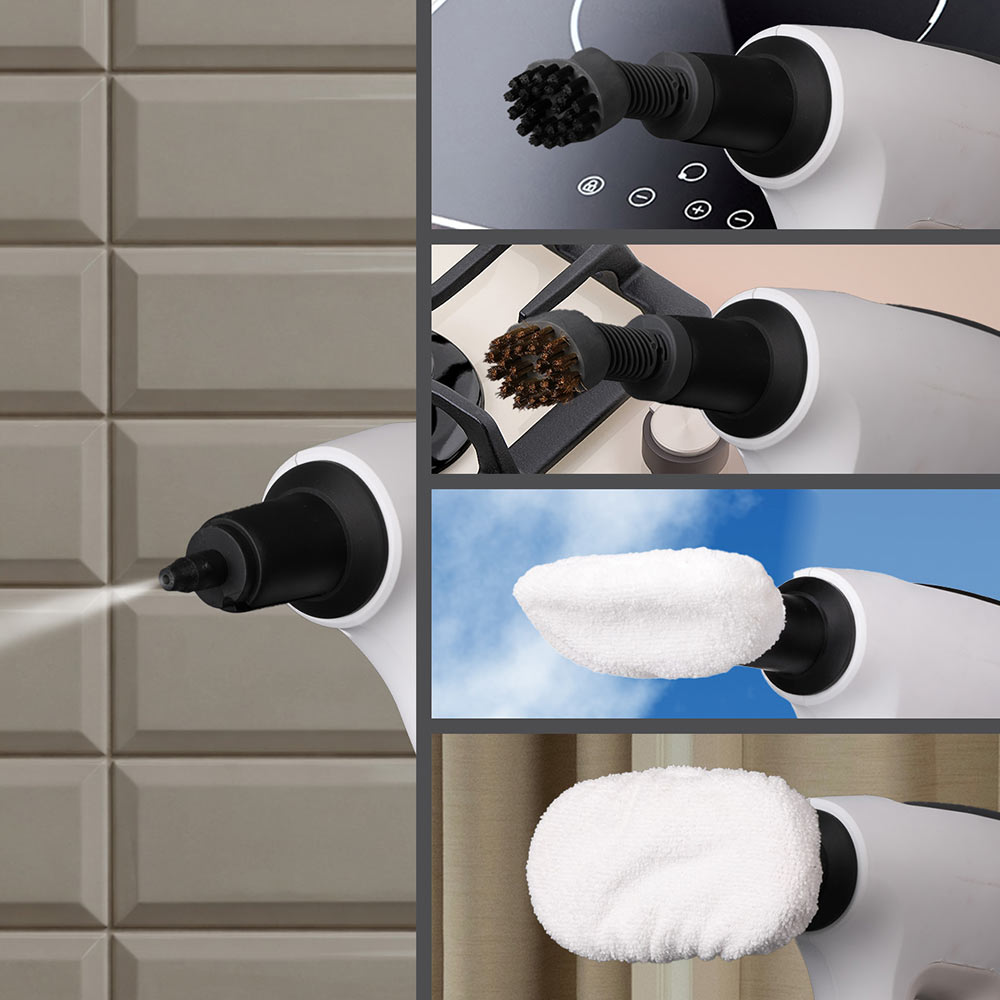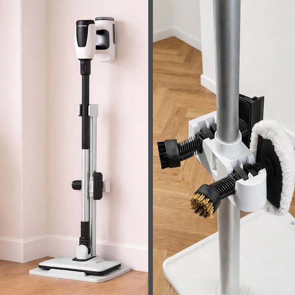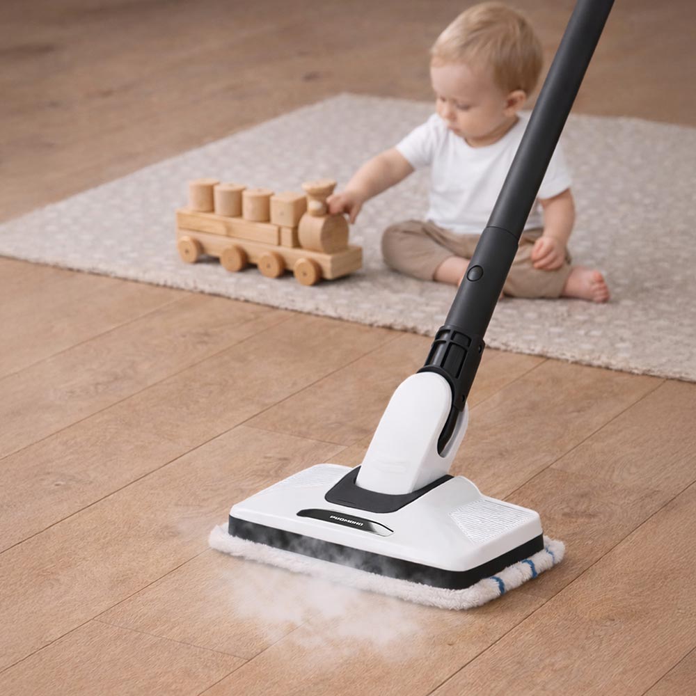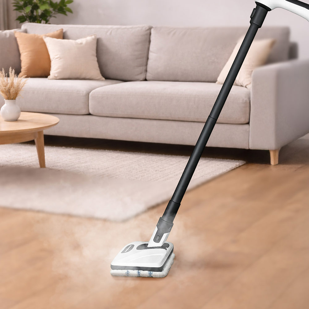 РЕДМОНД SC7001 — паровая швабра 2 в 1, совмещающая функции полноразмерной швабры и пароочистителя для комплексной уборки. Прибор создает мощный поток пара до 30 г/мин, который быстро очищает любые поверхности и уничтожает до 99,9% бактерий, что особенно важно в семьях с детьми и животными. Два режима подачи пара позволят подобрать интенсивность работы под разные типы покрытий и загрязнений. Удобная насадка с подвижным соединением облегчает уборку под мебелью, а комплект дополнительных насадок позволяет справляться с межплиточными швами, окнами, текстилем и даже газовыми плитами. Длинный 5-метровый шнур, подставка-органайзер для хранения и съемный резервуар на 360 мл делают SC7001 практичным и комфортным устройством для любой квартиры или дома.