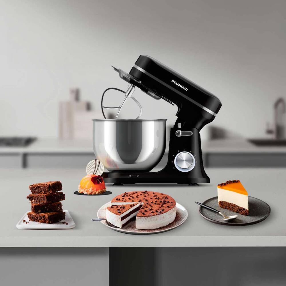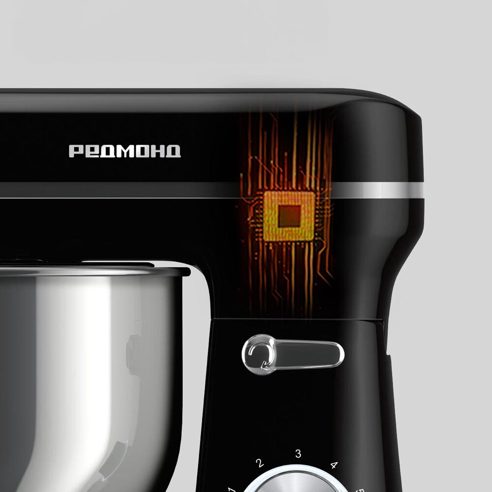 РЕДМОНД FM603 — функциональный планетарный миксер в черном цвете. В комплекте идут 3 съемные насадки: лопатка для смешивания, венчик и крюк для теста, при помощи которых вы сможете добиться идеальной текстуры для любой смеси. Мощность 1000 Вт позволяет прибору стабильно работать на высоких скоростях без перегрева.
