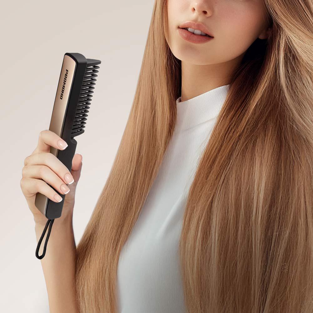 Расческа-выпрямитель РЕДМОНД HS1742 — портативное устройство для бережного выпрямления и укладки волос. Подходит не только для домашнего использования, но и для путешествий. Благодаря небольшому весу (161 г) и компактному размеру она легко помещается в ручную кладь, багаж или бьюти-кейс. Встроенный аккумулятор позволяет использовать выпрямитель до 70 минут без подзарядки.