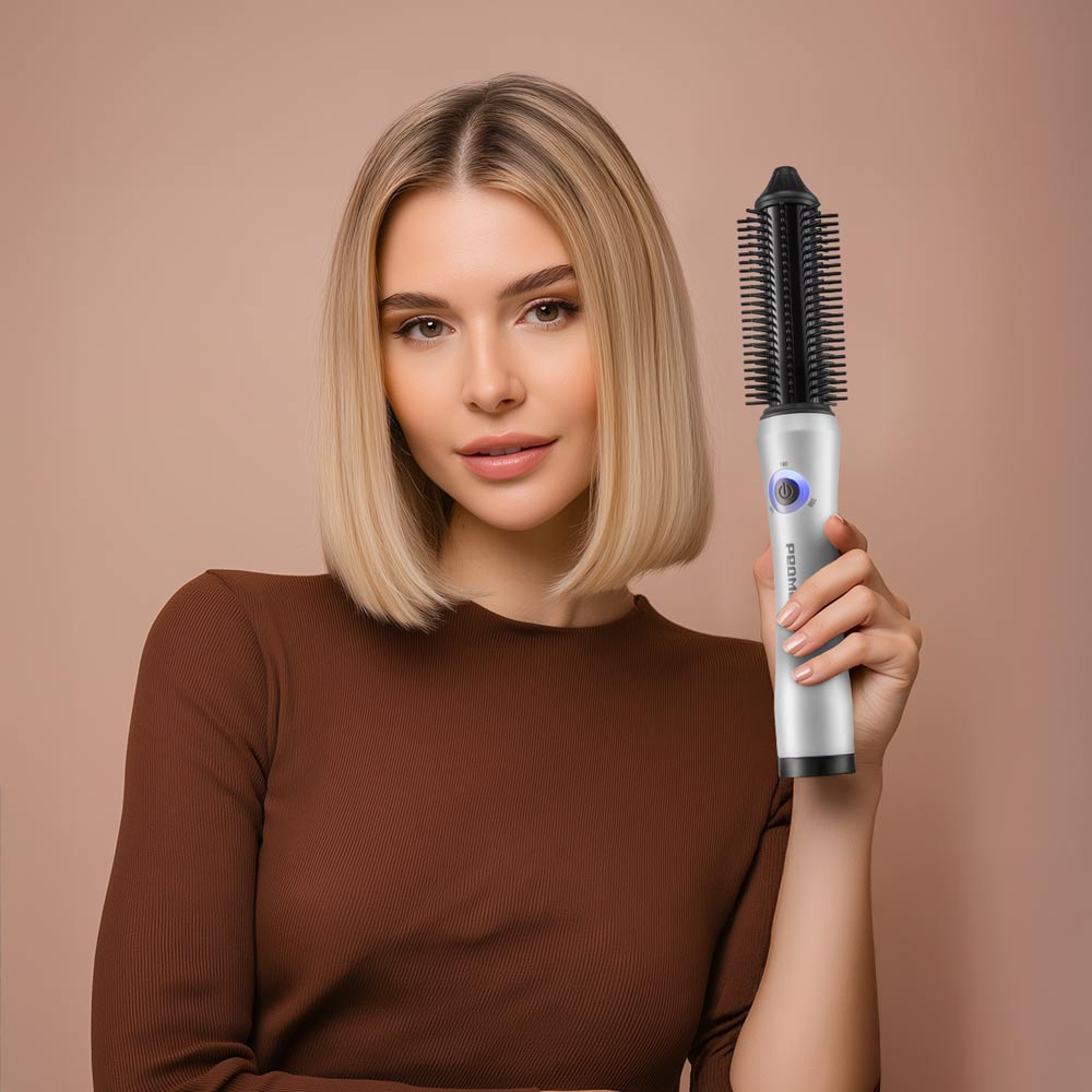 РЕДМОНД HS1741 — беспроводная расческа-выпрямитель для повседневного использования. Благодаря небольшому весу 185 г и компактному размеру она не займет много места в багаже. С 3 температурными режимами и керамическим покрытием зубцов модель отлично подойдет для укладки текстурных стрижек и каре.