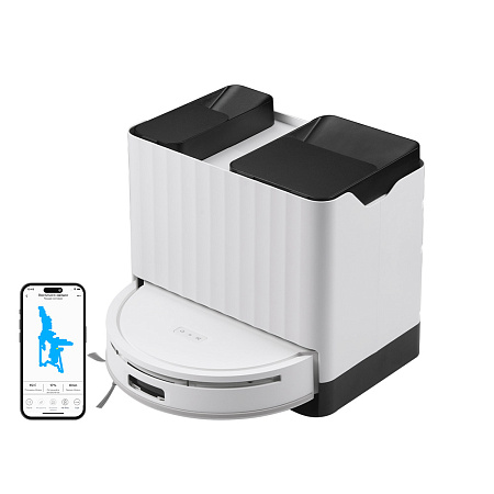 Благодаря специальной конструкции мопы вплотную прижимаются к полу, эффективно удаляя загрязнения и липкие пятна. А док-станция 3 в 1 упрощает процесс ухода за прибором: робот самостоятельно сбрасывает пыль, чистит и сушит мопы горячим воздухом.