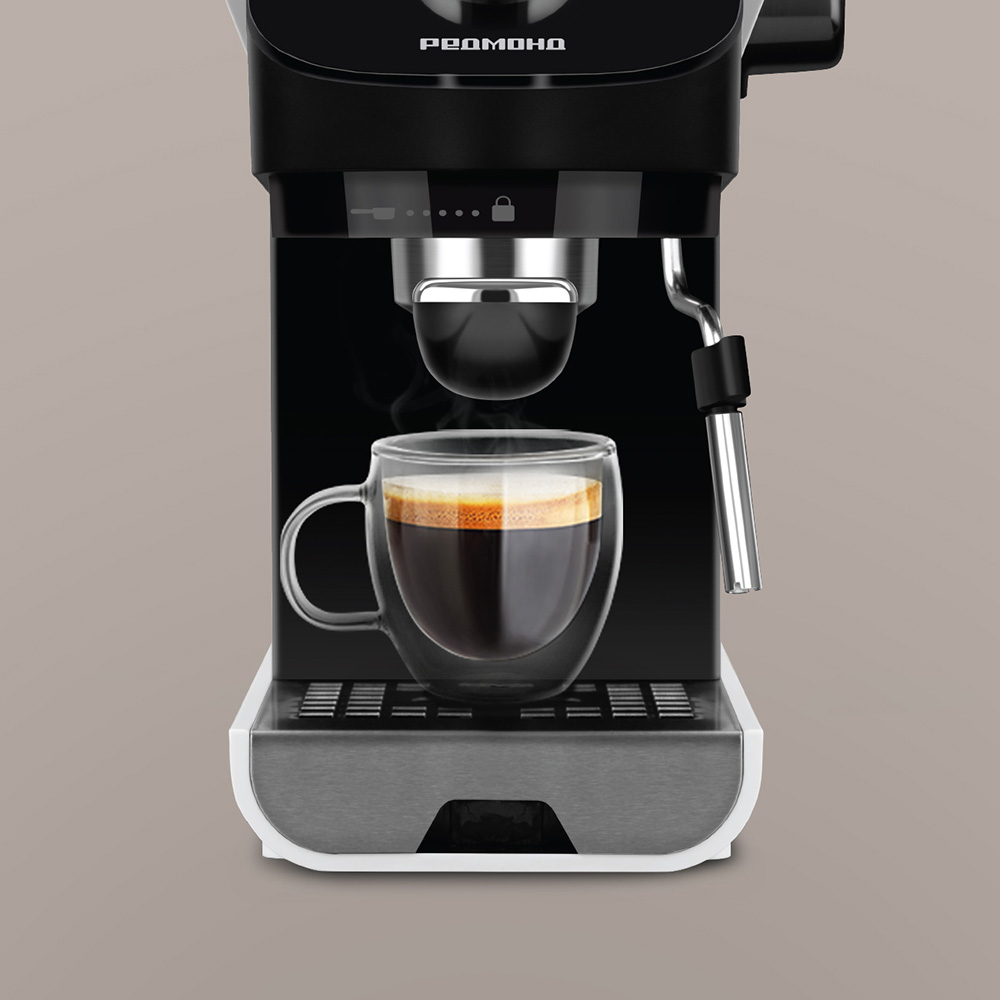 Кофеварка РЕДМОНД CM717 рожкового типа поможет приготовить крепкий эспрессо и кофейные напитки на основе молока. Она оснащена профессиональной помпой Ulka и капучинатором с мощной струей пара — напиток получится вкусным как в настоящей кофейне. Функция предварительного смачивания поможет раскрыть многогранный вкус кофе. А удобный регулятор с интегрированным дисплеем упростит управление прибором.