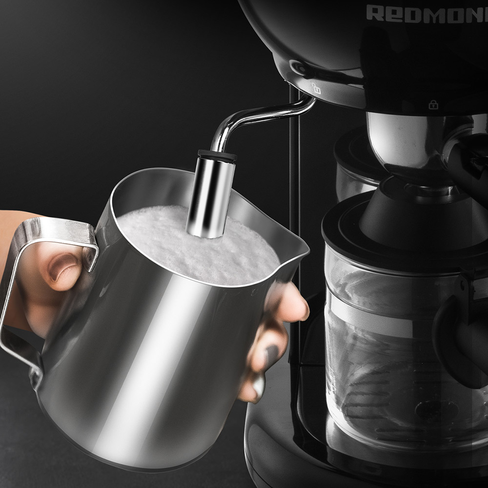 РЕДМОНД RCM-1521 – современная рожковая кофеварка со встроенным капучинатором для приготовления бодрящего эспрессо и ваших любимых кофейных напитков на его основе – капучино, латте макиато и других.