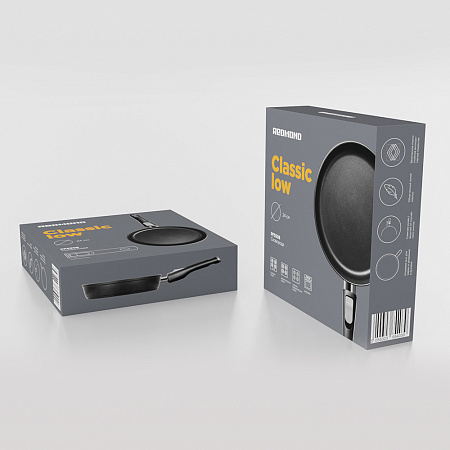 Низкая литая сковорода REDMOND PF5508 (24 см) — удобная и долговечная посуда для приготовления еды. Подходит для электрической, газовой и стеклокерамической плиты. Можно использовать в духовке, сняв ручку.