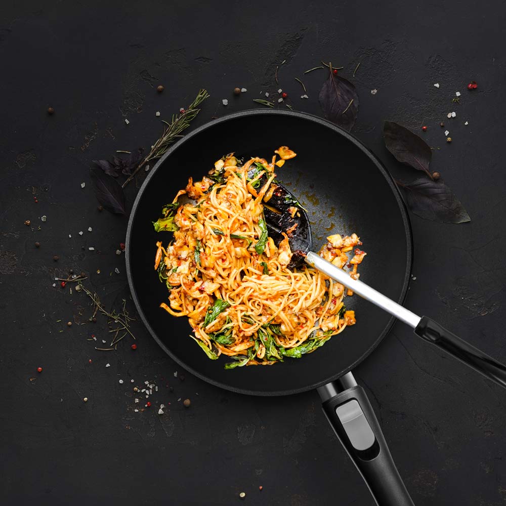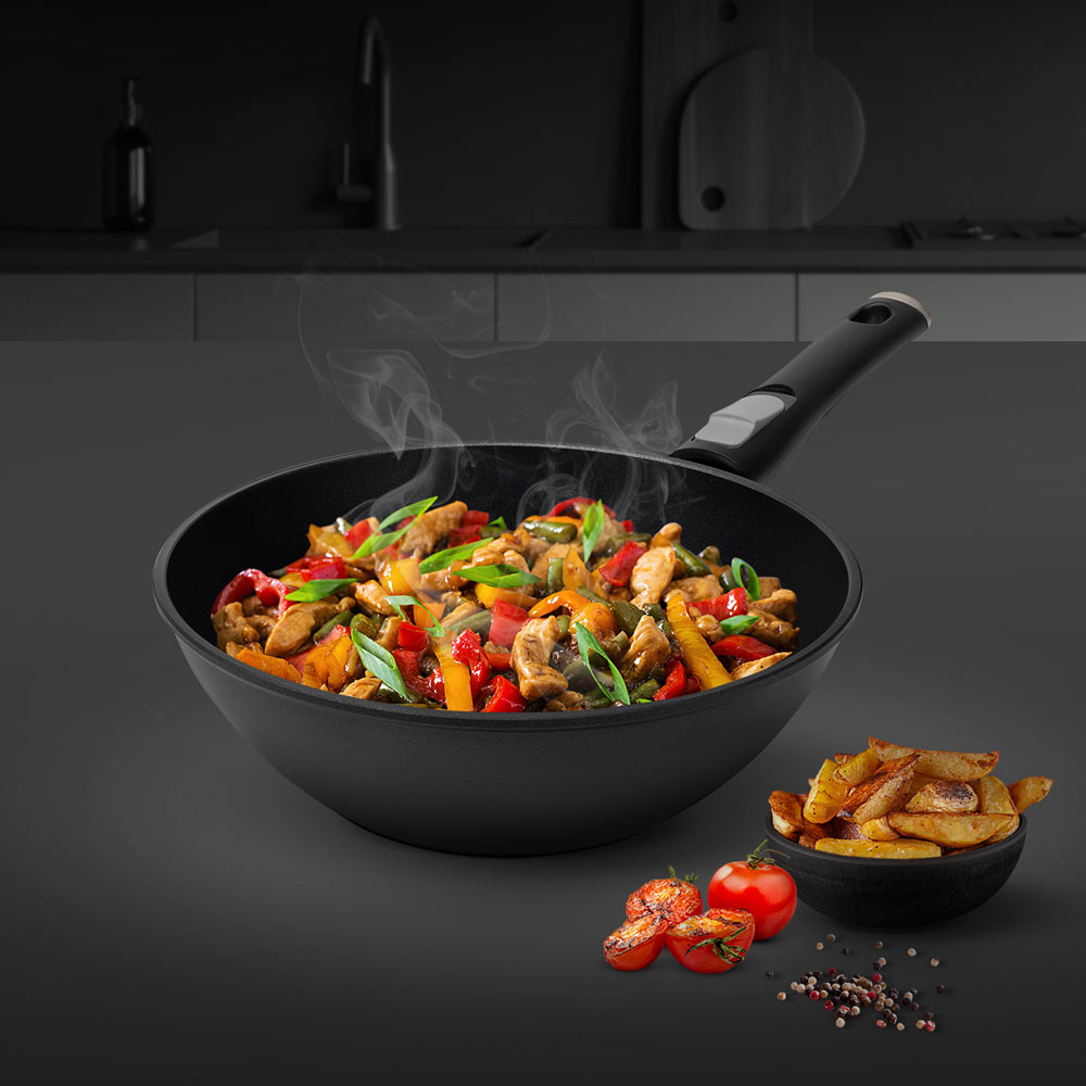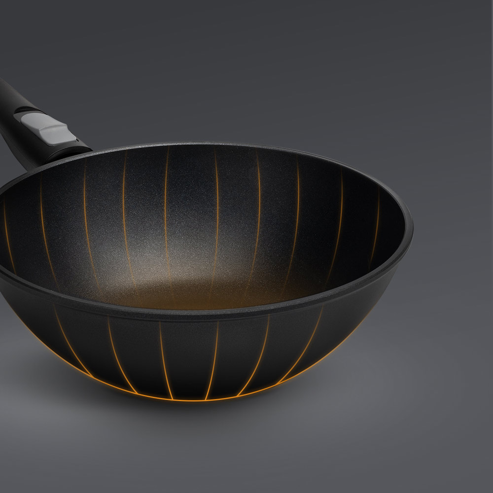REDMOND PF5505 — литой вок (круглая глубокая сковорода) для приготовления традиционных китайских и японских блюд: лапши, теплых салатов, удонов и т. д. В нем удобно обжаривать фарш и мясо кусочками.