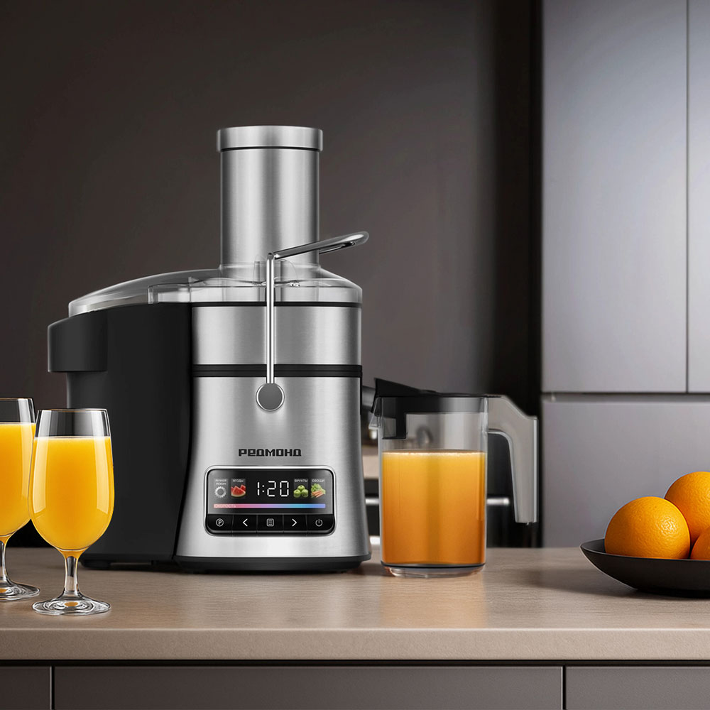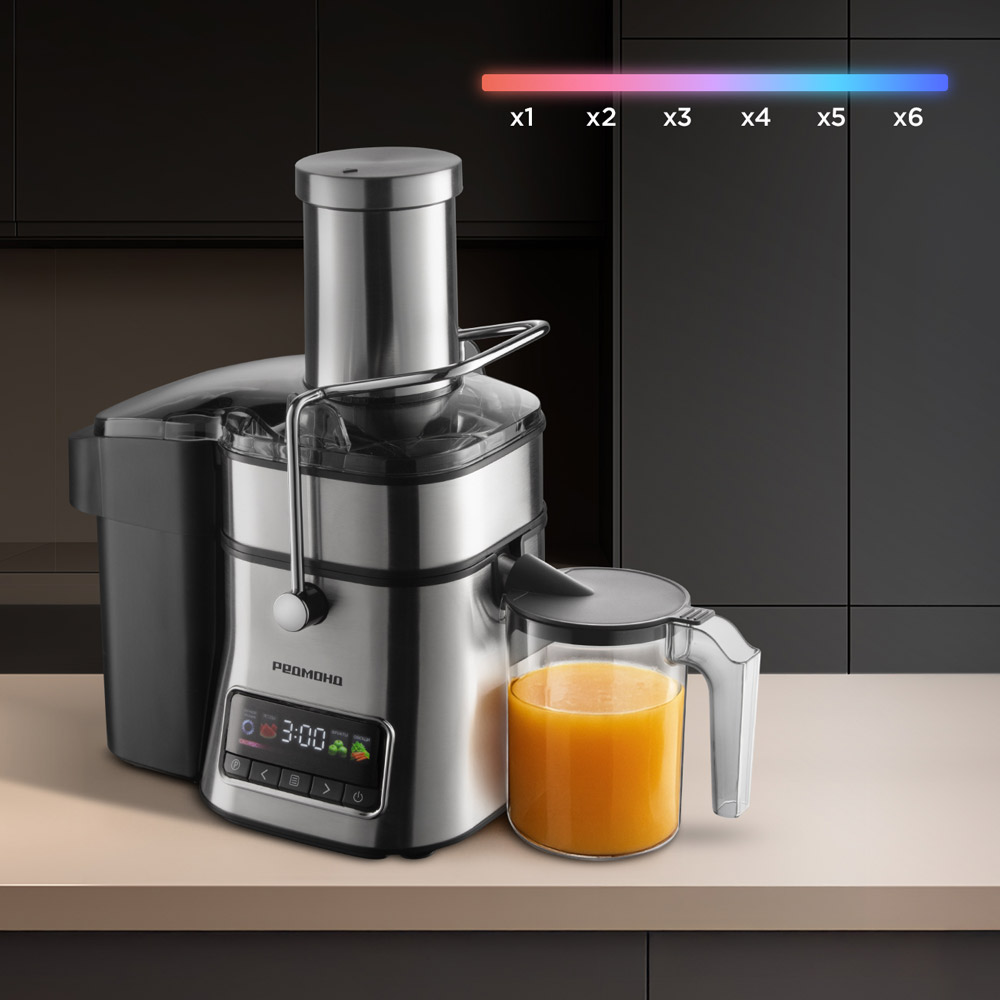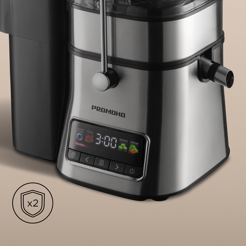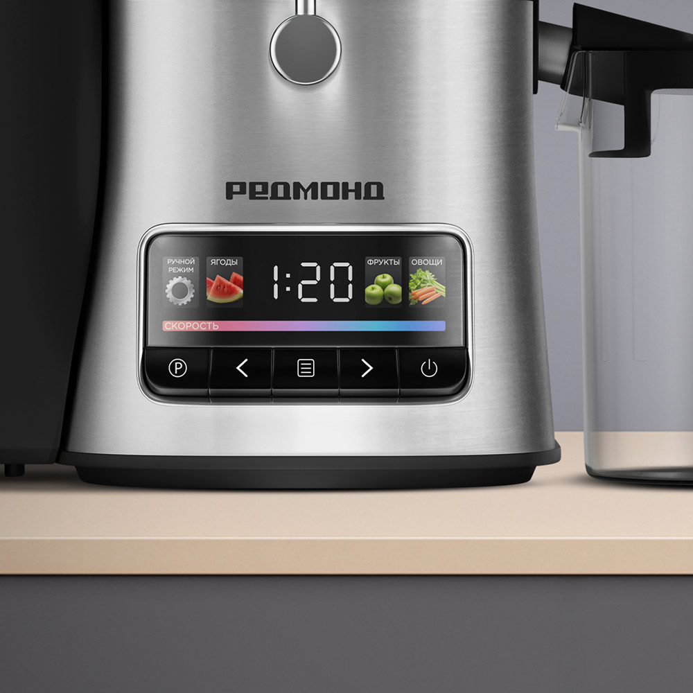 Центробежная соковыжималка РЕДМОНД J1404 максимально эффективно отожмет сок из твердых и мягких плодов. Благодаря автопрограммам и 6 скоростям ее работу можно адаптировать под конкретный продукт. Широкая горловина, цветной LED-дисплей и кувшин с удобной крышкой обеспечат комфорт использования. А двойная защита двигателя — бесперебойную работу.