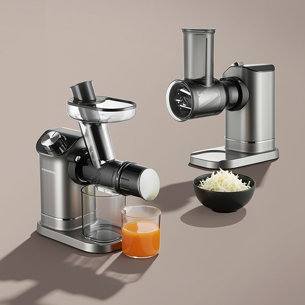 РЕДМОНД J1420-4 — устройство 2 в 1 сочетает функции соковыжималки и овощерезки. Система холодного отжима позволяет получать фреш с максимальным количеством полезных свойств, сохраняя все витамины. Три насадки — две терки и шинковка — помогут быстро нарезать продукты для любимых блюд. Управляйте прибором с помощью регулятора: достаточно повернуть его в нужную сторону, чтобы начать работу, активировать функцию реверса или отключить соковыжималку. J1420-4 гарантирует простоту в использовании и отличную функциональность