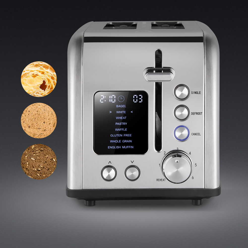 Тостер РЕДМОНД Т902 — это стильный и компактный прибор, который предназначен для обжаривания, подогрева и разморозки выпечки и хлеба. Прибор оснащен выдвижным поддоном для крошек и светодиодным дисплеем. Имеет 6 степеней обжаривания, чтобы вы могли готовить тосты именно такими, как вы любите.
