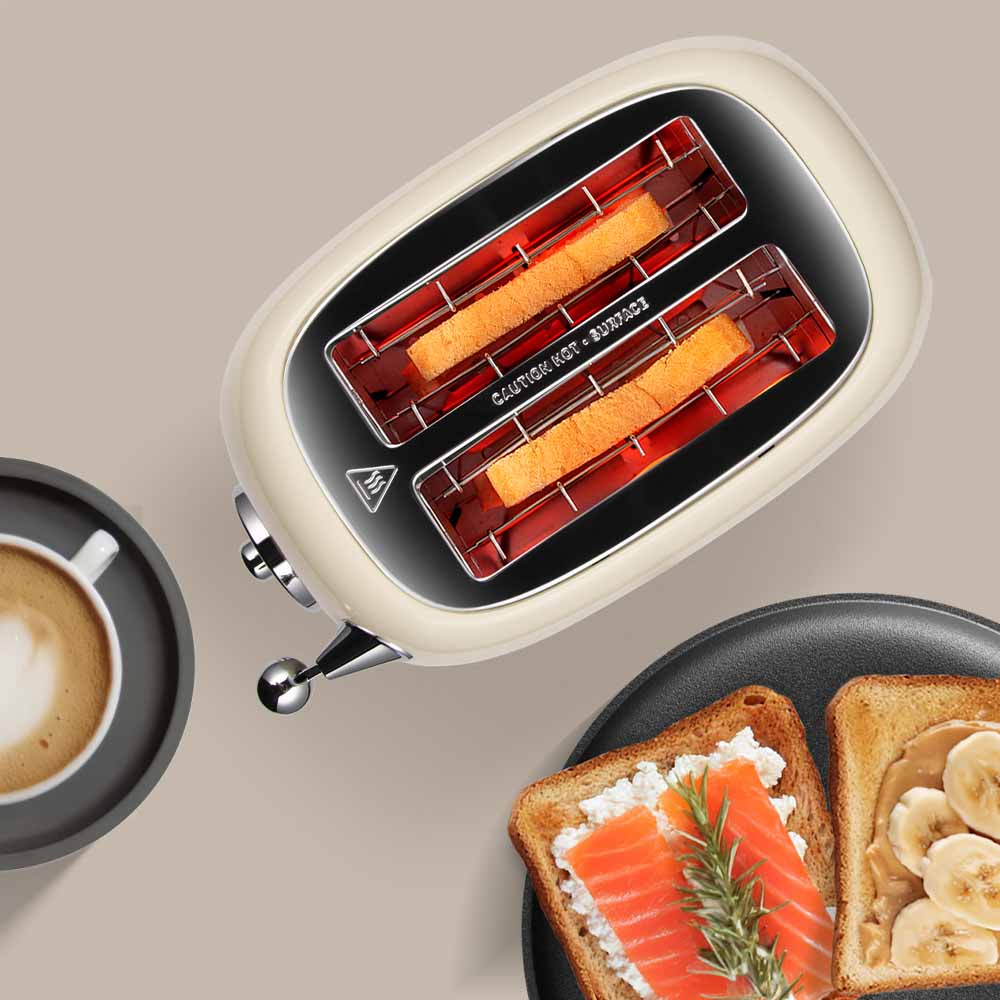 Тостер РЕДМОНД T909 с выполнен в изящном винтажном дизайне. Стильный и функциональный, он быстро приготовит хрустящие и ароматные тосты. Выберите одну из 6 степеней обжарки, чтобы добиться идеальной корочки. Устройство также позволяет подогревать готовые тосты или бережно размораживать, а потом обжаривать хлеб до нужной степени.