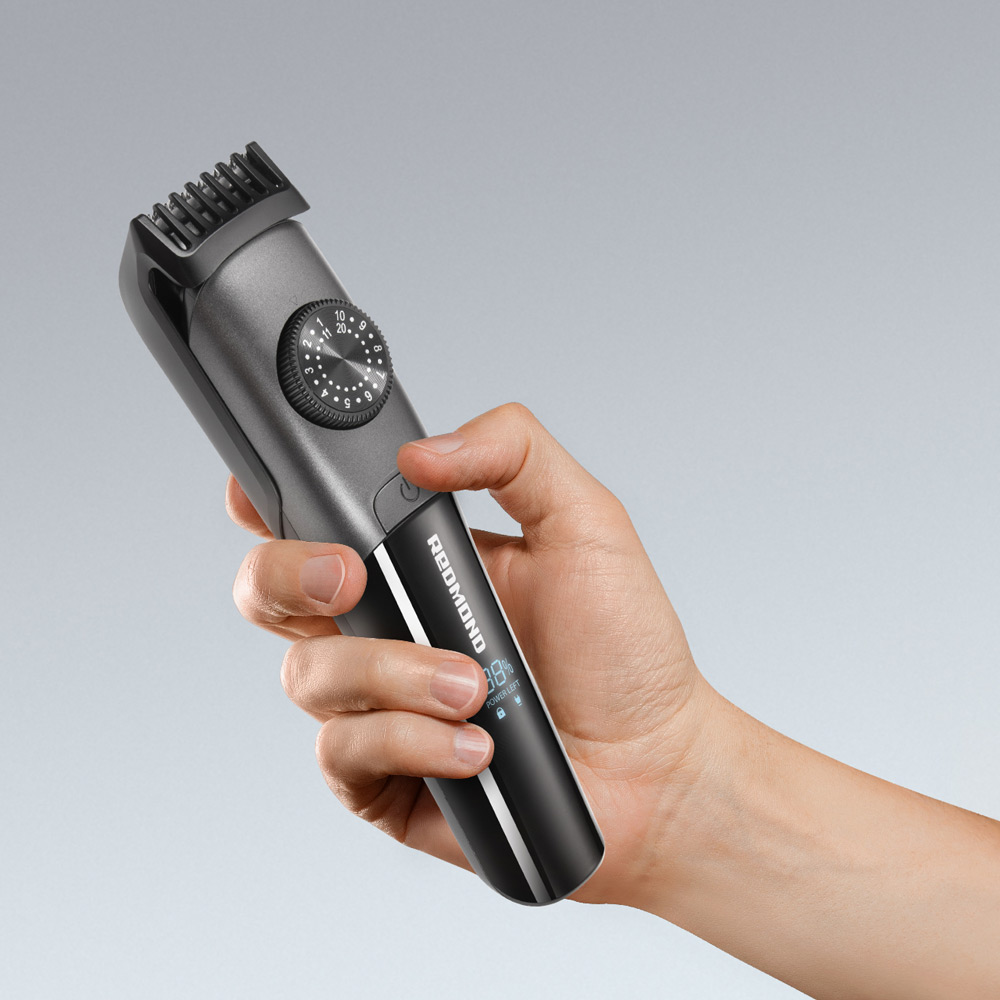 РЕДМОНД HT4801 — стильный триммер для стрижки бороды и волос с защищенным от воды корпусом и емким аккумулятором на 800 мА*ч. Время непрерывной работы от аккумулятора — 2 часа. Если вы обычно тратите на бритье 10–15 минут, то полного заряда хватит на несколько недель использования. Триммер заряжается от кабеля USB Type С. Работает как от аккумулятора, так и от сети, оснащен дисплеем с индикацией уровня заряда.