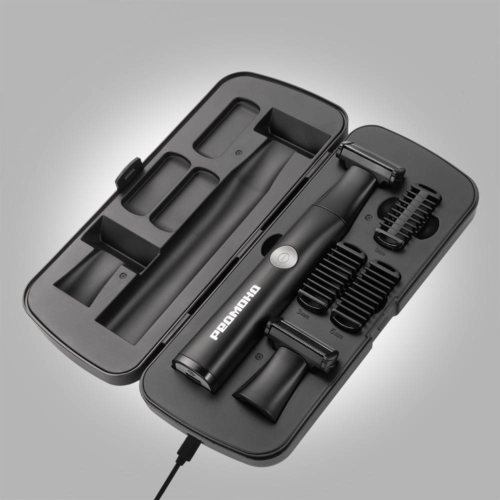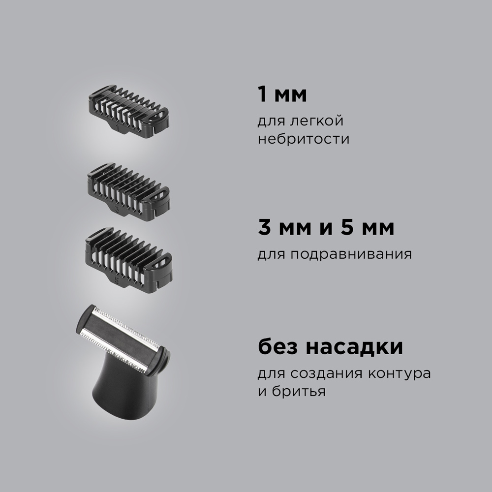 Триммер РЕДМОНД HT4804 с 3 насадками и сменным лезвием подходит для аккуратной стрижки бороды, гладкого бритья и создания эффекта легкой небритости. Хранить устройство с аксессуарами удобно в кейсе. Заряда аккумулятора хватает на беспрерывную работу до 90 минут. Влагозащита — IPX7, поэтому триммер не боится воды.