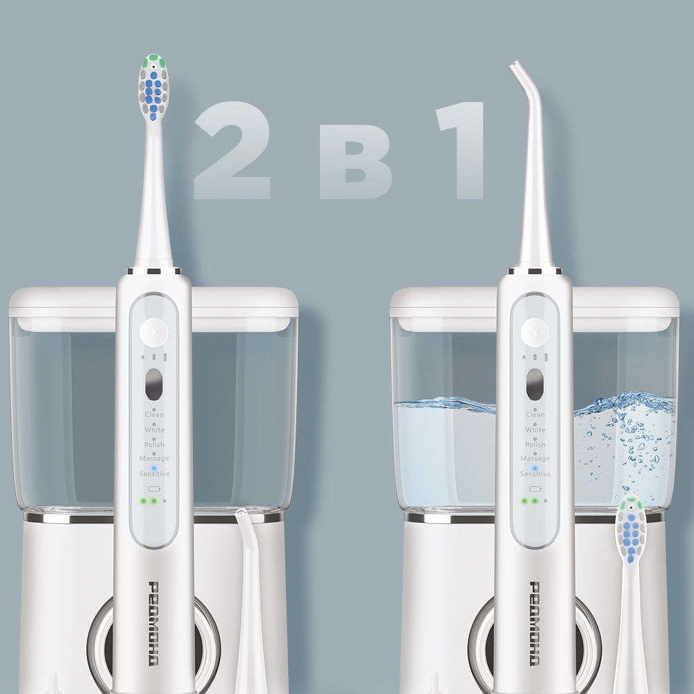 Зубной центр РЕДМОНД YR4503 сочетает функции звуковой щетки и ирригатора. Насадка нового поколения TwinAction, согласно исследованиям*, эффективнее справляется с удалением налета. 8 персонализированных режимов обеспечивают качественный уход за полостью рта. На док-станции можно разместить устройство и насадки, чтобы все необходимое было у вас под рукой.