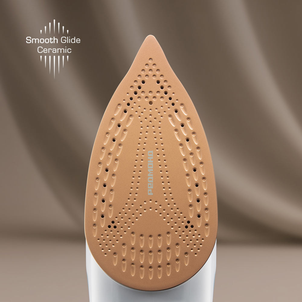 Утюг РЕДМОНД IR1604 обеспечит качественный уход за вещами благодаря постоянному пару 50 г/мин и мощному паровому удару 180 г/мин. Инновационное покрытие подошвы Smooth Glide Ceramic гладко скользит по ткани, а увеличенный резервуар для воды 400 мл позволяет привести в порядок за один раз больше одежды. При образовании накипи воспользуйтесь функцией самоочистки для ее легкого удаления. А если вы забудете обесточить утюг после глажения, он выключится автоматически.