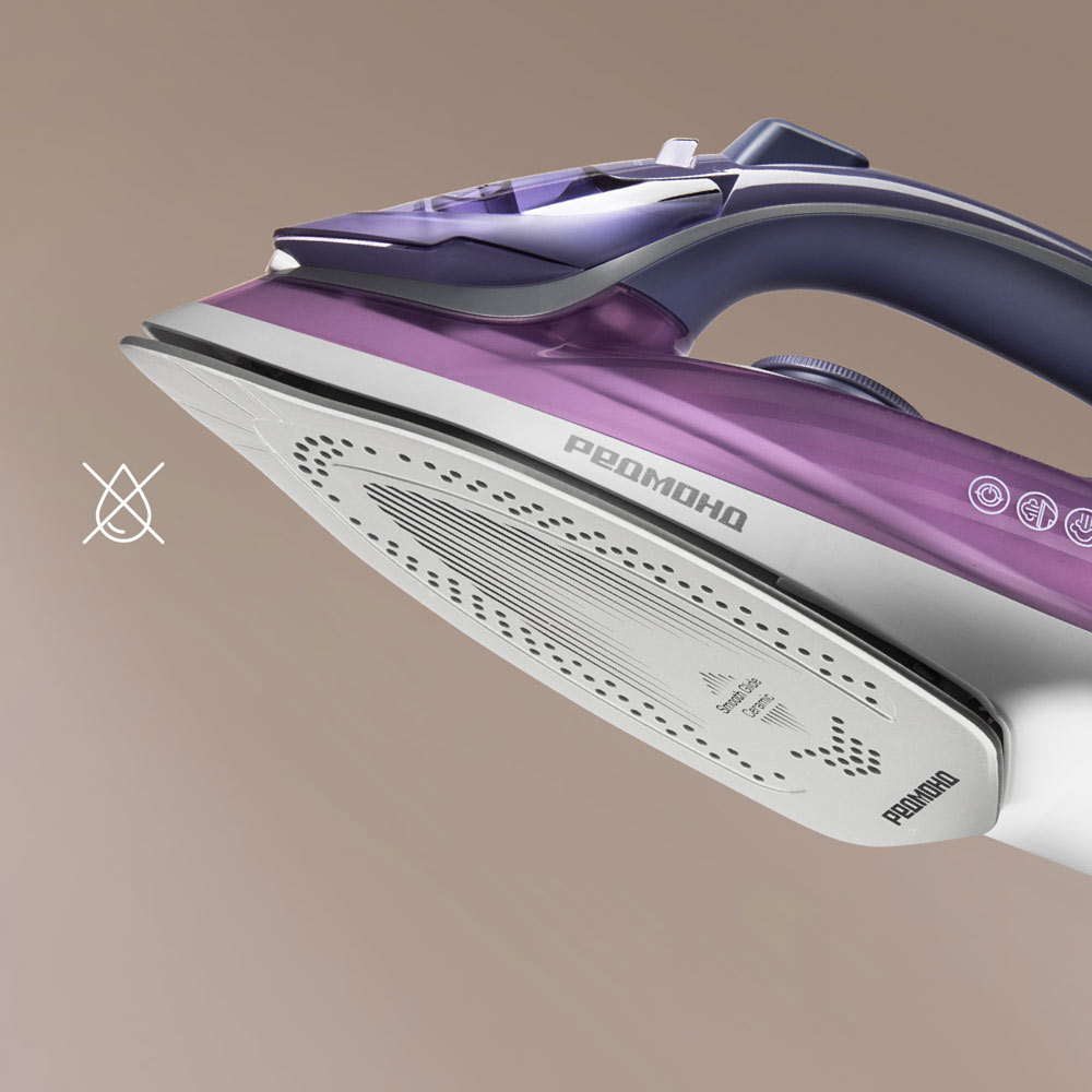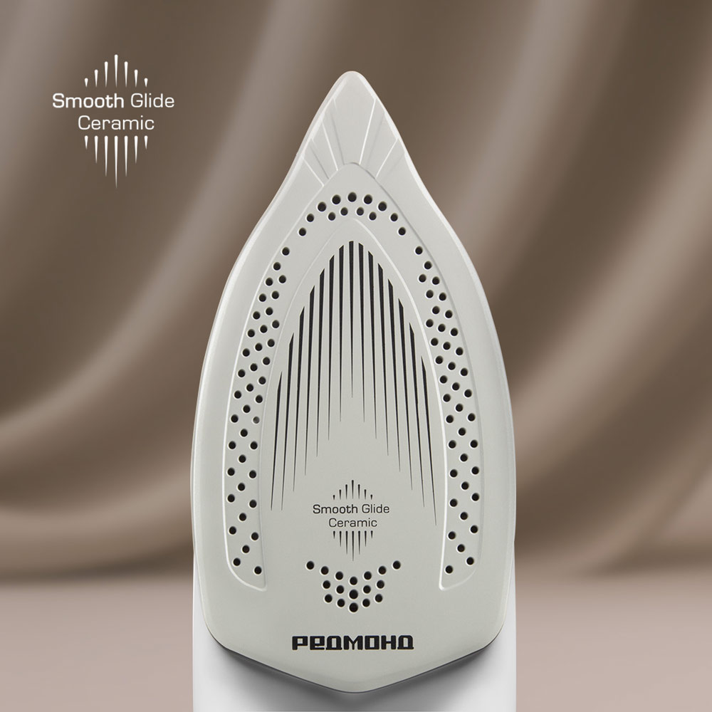 РЕДМОНД IR1605 — универсальный утюг для глажения и ухода за одеждой с керамической подошвой Smooth Glide Ceramic и функцией вертикального отпаривания. Мощный паровой удар 200 г/мин поможет быстро разгладить плотные и сильно мнущиеся ткани. А система «Капля-стоп» эффективно предотвращает появление капель на одежде в процессе глажки.
