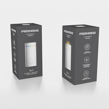 Аромадиффузор РЕДМОНД AD3302 — современное компактное устройство 3 в 1 для распыления эфирных масел или ароматических концентратов. Диффузор насыщает пространство приятным ароматом и дарит уют. Ультразвуковая технология распыления позволяет с помощью 2–3 капель эфирного масла быстро наполнить комнату любимым ароматом. Контурная 7-цветная подсветка и подсветка с эффектом свечи сделают прибор украшением любого интерьера. Устройство работает до 5 часов без подзарядки: возьмите диффузор на работу или установите в машине.