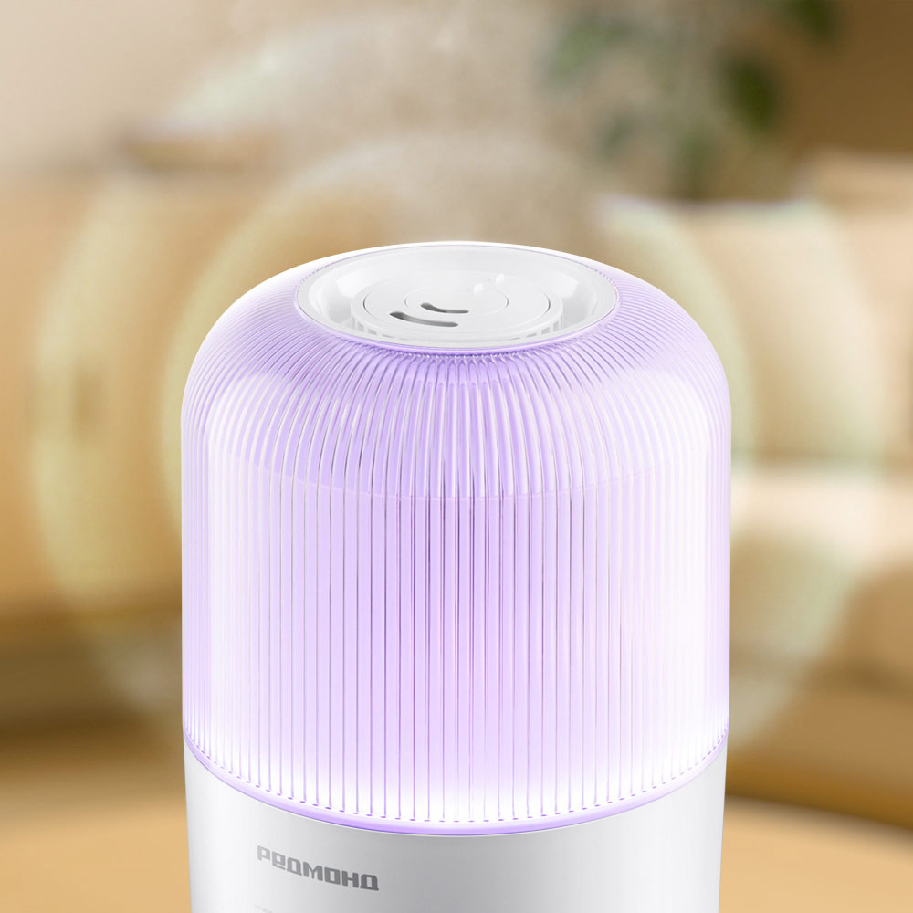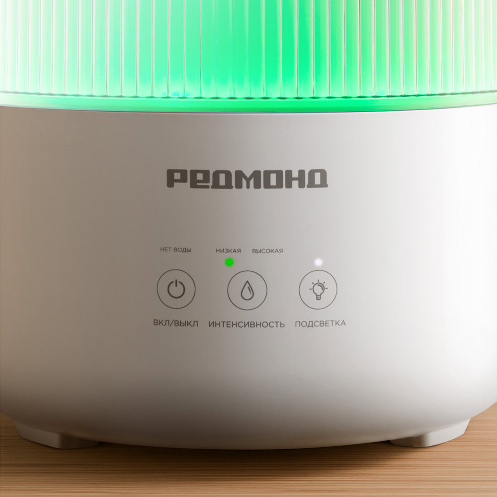 РЕДМОНД HF2204 — увлажнитель для дома с двумя режимами и расходом воды 220 мл/ч для поддержания оптимального микроклимата в помещениях до 30 м². Сенсорная панель делает управление простым, а яркая подсветка создает уютную атмосферу — можно выбрать приятный оттенок из 5 различных цветов или отключить ее.