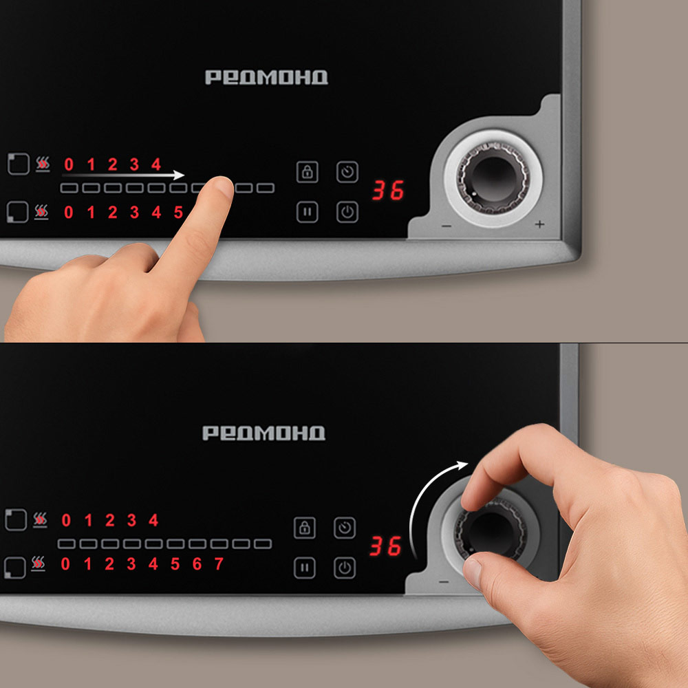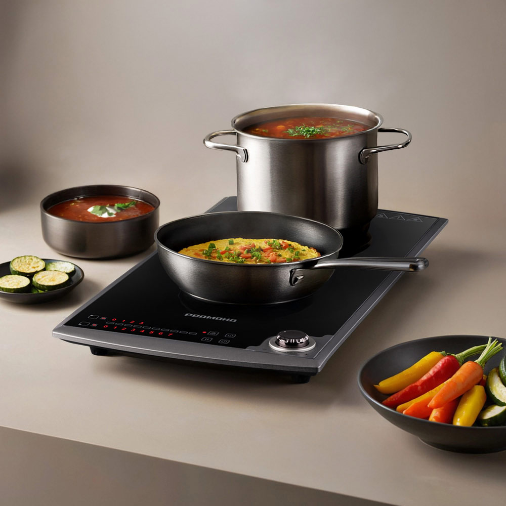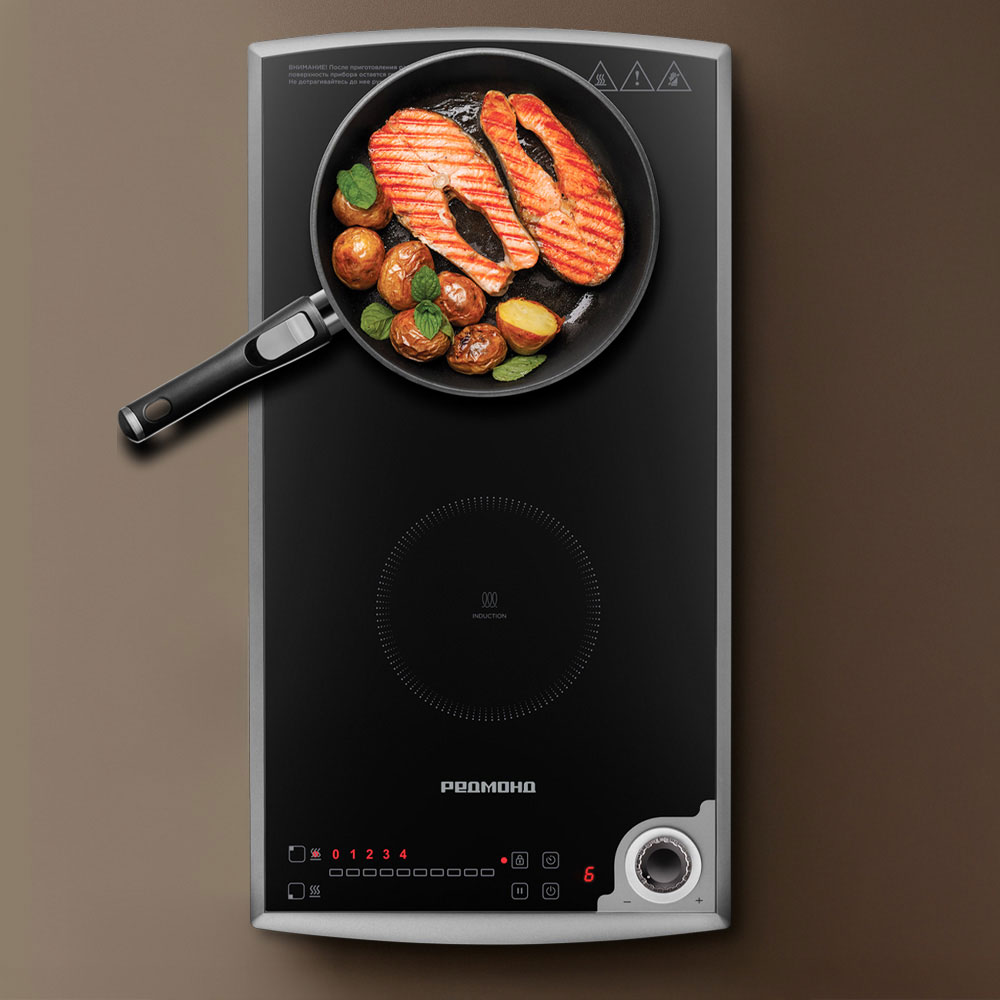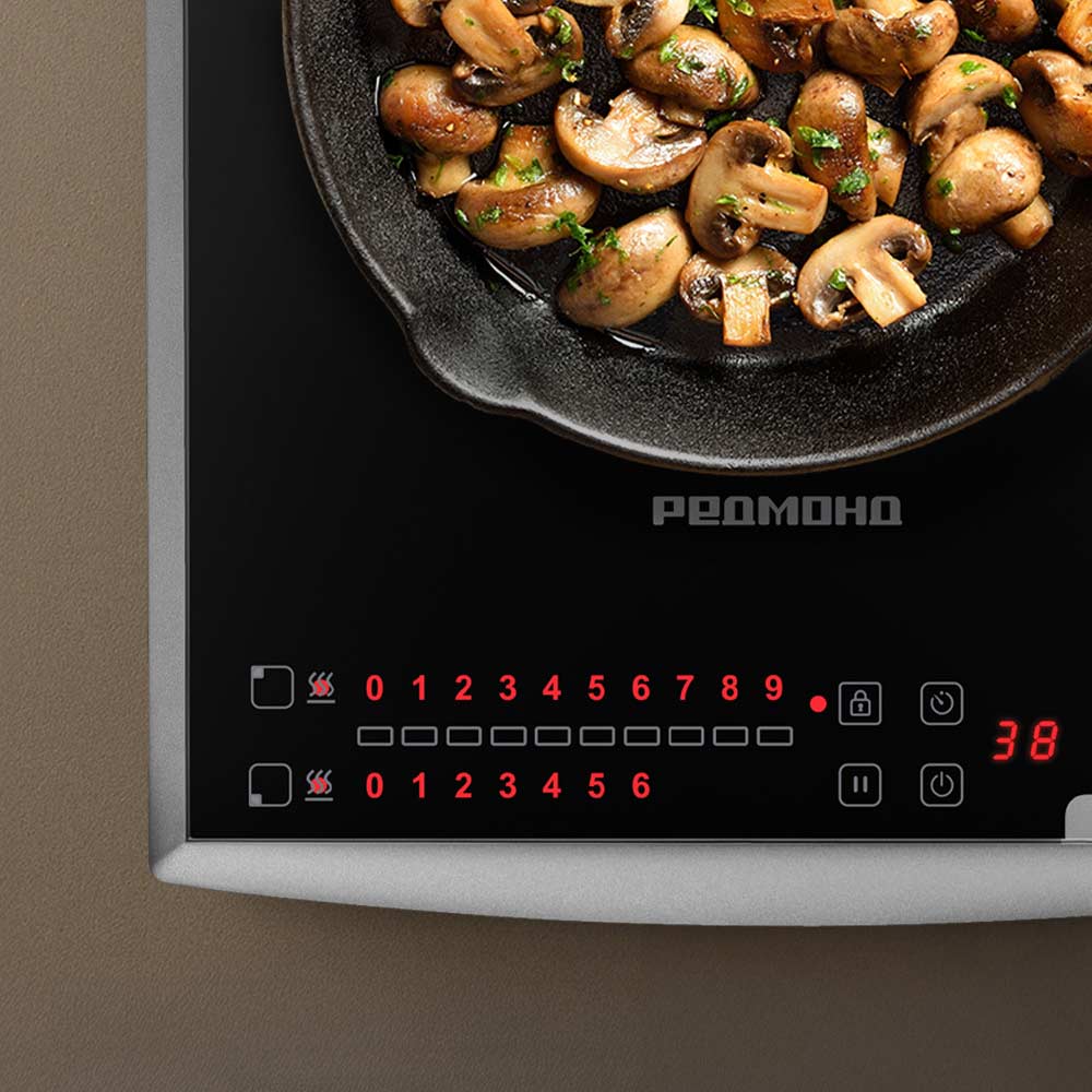 Индукционная плита РЕДМОНД IC2003 с двумя варочными зонами (14 и 16 см) подойдет для ежедневного использования дома или на даче. Благодаря индукционной технологии нагрев происходит быстро и точно — тепло передается непосредственно посуде. Каждая зона управляется отдельно: 9 уровней позволяют выбрать нужный режим для разных задач — от подогрева до обжарки. Таймер до 99 минут упрощает контроль: плита отключится сама по завершении времени. Безопасность обеспечивается защитой от перегрева, автоотключением без посуды и блокировкой панели от случайных нажатий.