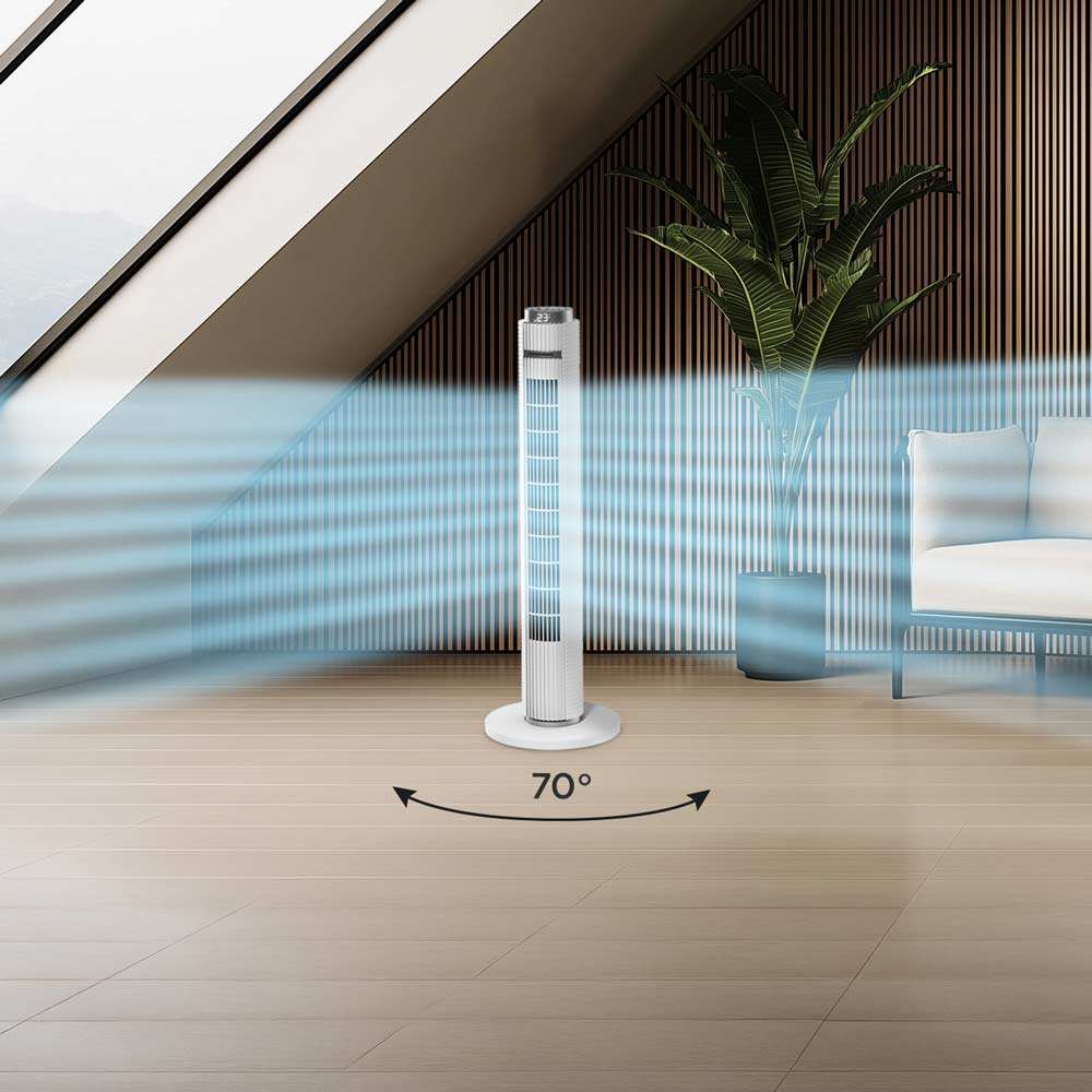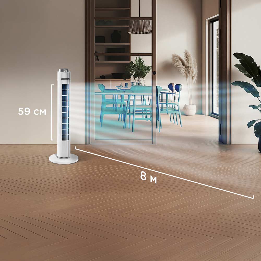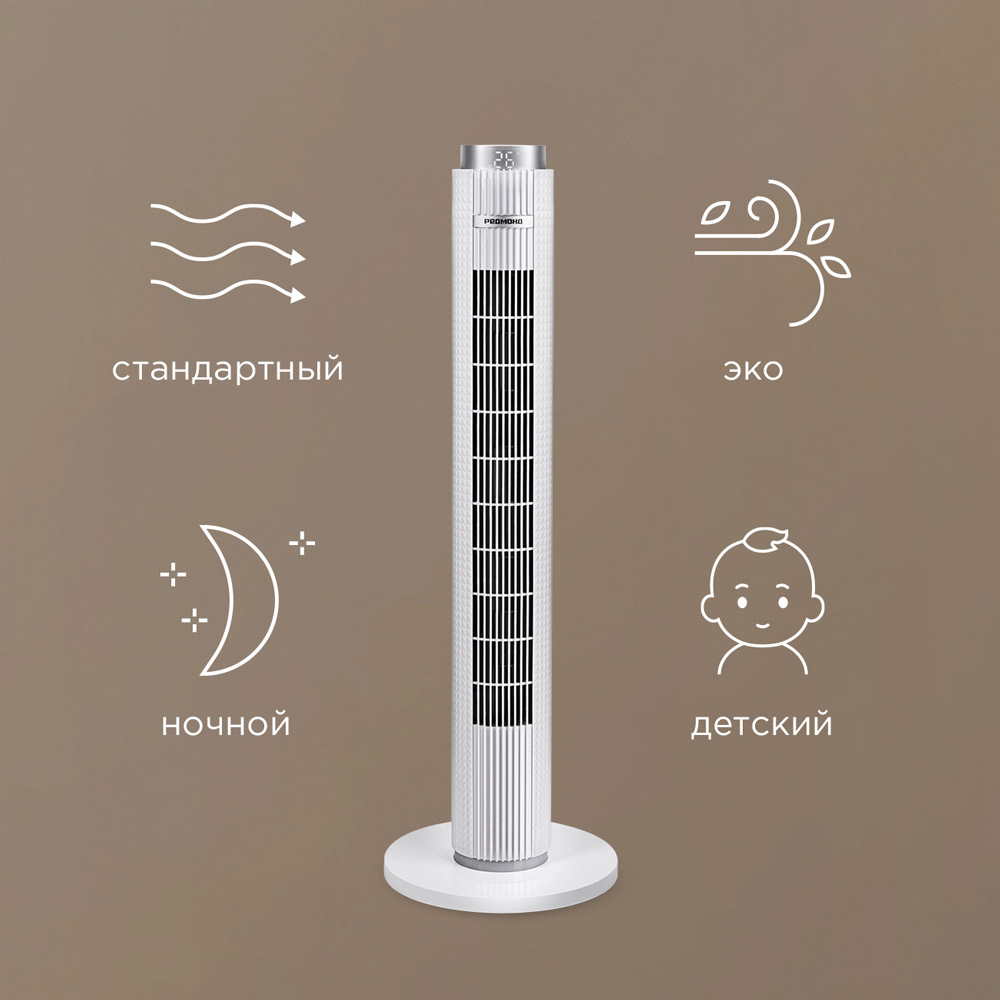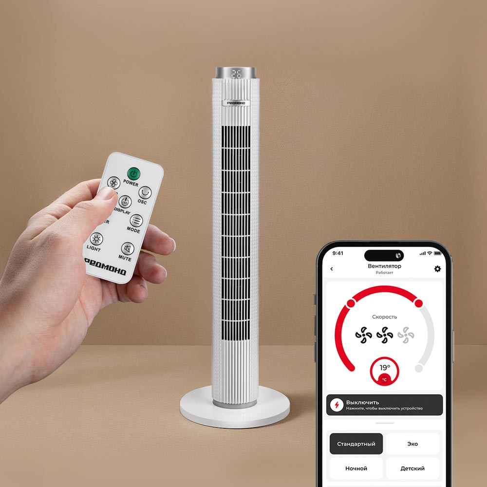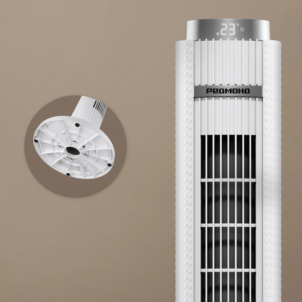 РЕДМОНД AP2215S — умный напольный вентилятор с удаленным доступом через мобильное приложение Ready for Sky REDMOND. С расстоянием обдува 8 метров и размером воздуховода 59 см модель может быстро охладить большую площадь в квартире или в частном доме. Таймер позволяет настроить проветривание на 1–12 часов. А благодаря низкому уровню шума 43 дБ вентилятор не помешает во время сна, отдыха или работы.