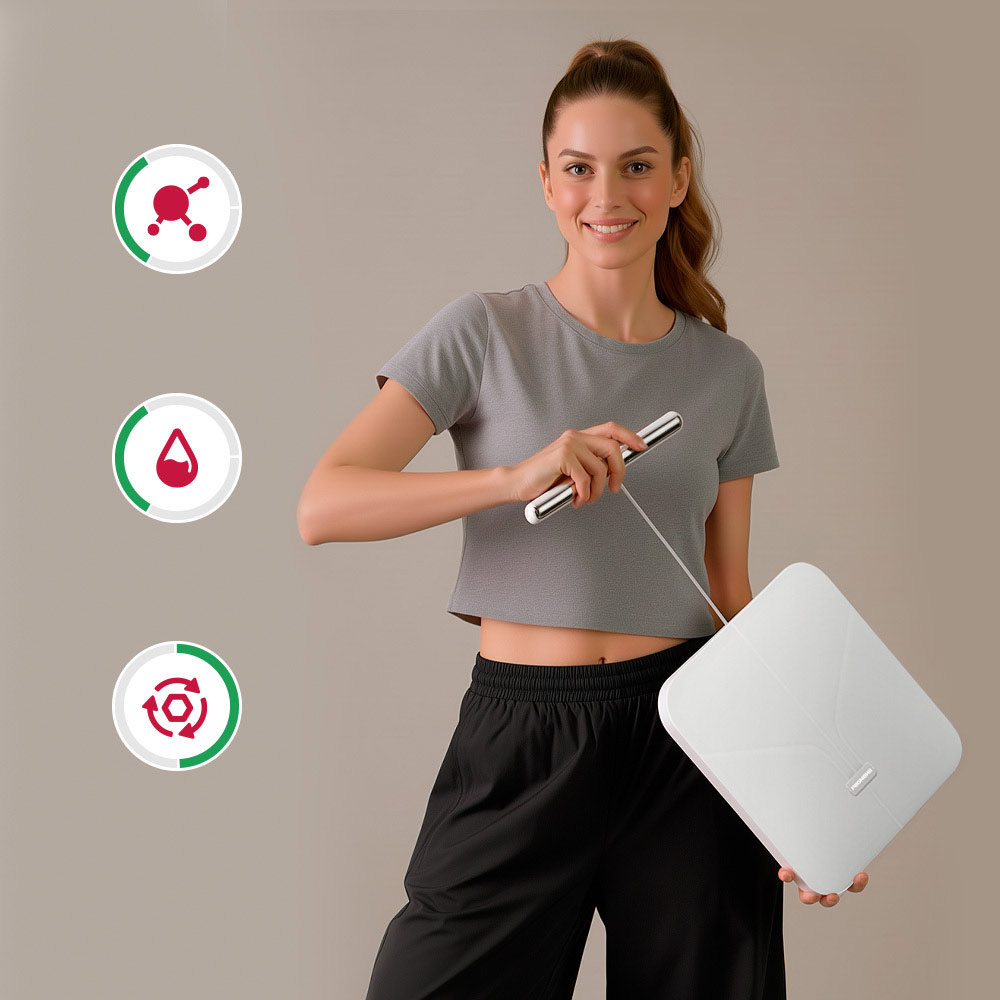 Весы напольные РЕДМОНД SB1813S — умный помощник для сверхточных измерений — 28 параметров — от жировой и мышечной массы до уровня белка и метаболизма. Все данные сохраняются в мобильном приложении, где можно отслеживать динамику и ставить цели. Есть возможность добавить несколько пользователей. Устройство работает от аккумулятора, в комплекте есть зарядка USB-C. Диапазон измерений — от 0,1 до 180 кг с точностью до 50 г.