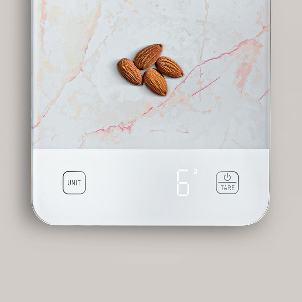 РЕДМОНД SK1800 — кухонные весы с минималистичным дизайном в цвете «Белый мрамор» станут помощником для тех, кто любит готовить. Благодаря точности до 1 грамма, они обеспечат соблюдение всех пропорций в рецептах, а функция вычета веса тары сделает процесс взвешивания максимально удобным и быстрым.