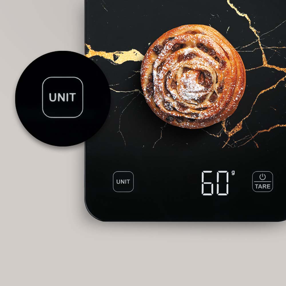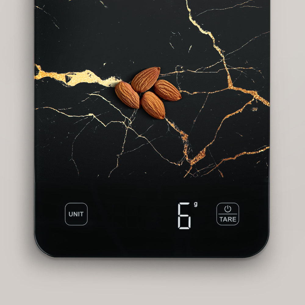 РЕДМОНД SK1800 — кухонные весы с минималистичным дизайном в цвете «Черный мрамор» станут помощником для тех, кто любит готовить. Благодаря точности до 1 грамма, они обеспечат соблюдение всех пропорций в рецептах, а функция вычета веса тары сделает процесс взвешивания максимально удобным и быстрым.