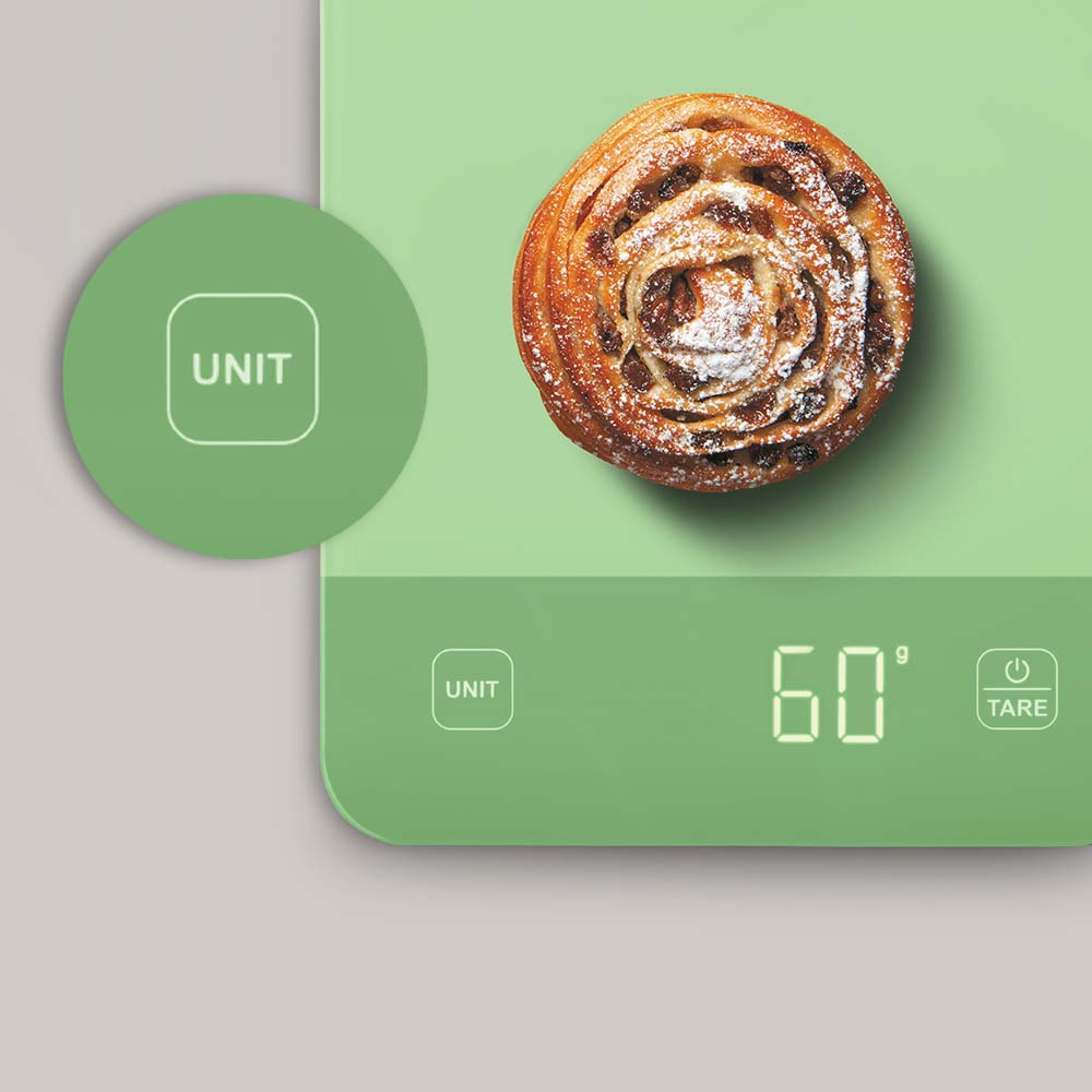 РЕДМОНД SK1800 — кухонные весы с минималистичным дизайном в зеленом цвете станут помощником для тех, кто любит готовить. Благодаря точности до 1 грамма, они обеспечат соблюдение всех пропорций в рецептах, а функция вычета веса тары сделает процесс взвешивания максимально удобным и быстрым.