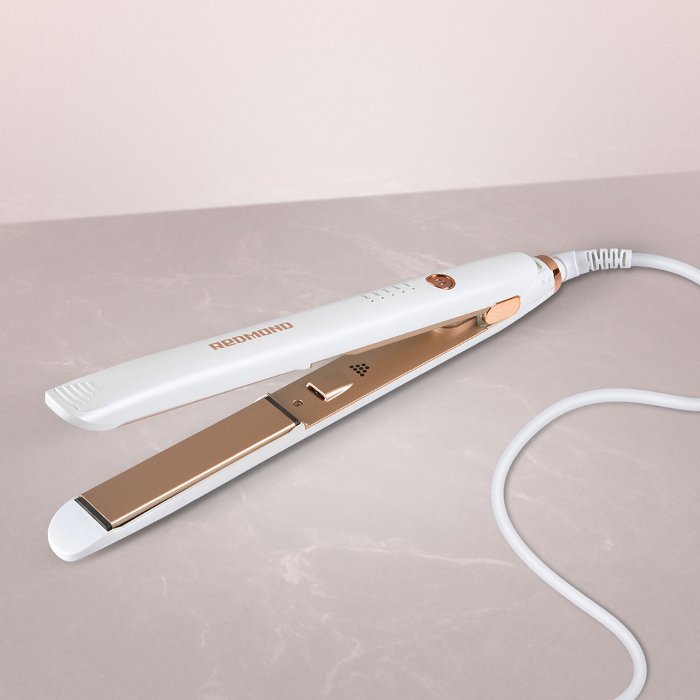 Выпрямитель РЕДМОНД HS1715 — современный прибор для выпрямления волос, создания причесок и укладок. Оснащен плавающими керамико-турмалиновыми пластинами, которые не пережимают волосы, имеет 5 температурных режимов от 140 до 230 °C и нагревается за 20 секунд. Подойдет обладательницам всех типов волос и поддержит здоровье локонов благодаря функции ионизации.