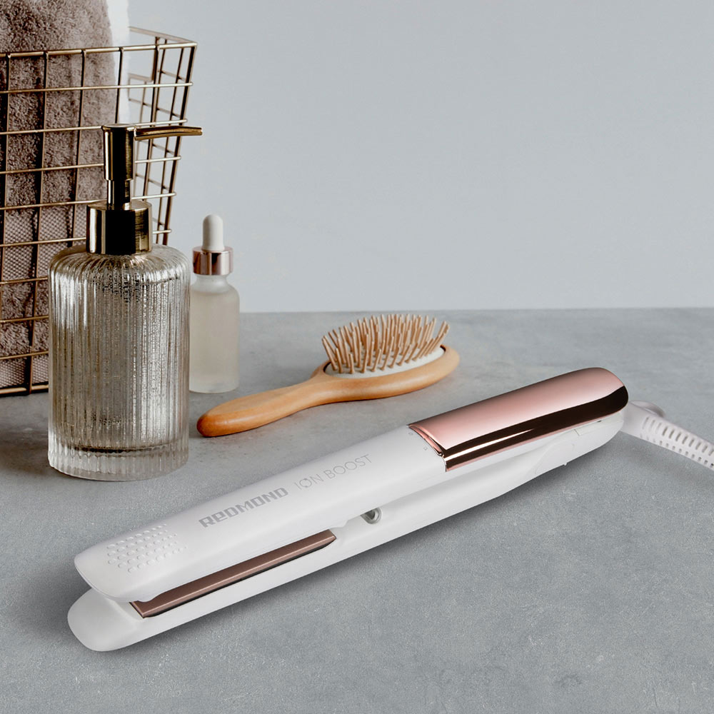 РЕДМОНД HS1716 (белый) — новый выпрямитель для безопасной и быстрой укладки волос дома. Закругленная форма пластин позволяет не только выпрямлять, но и делать упругие локоны. А небольшой вес дает возможность брать устройство с собой в отпуск или на важное мероприятие.