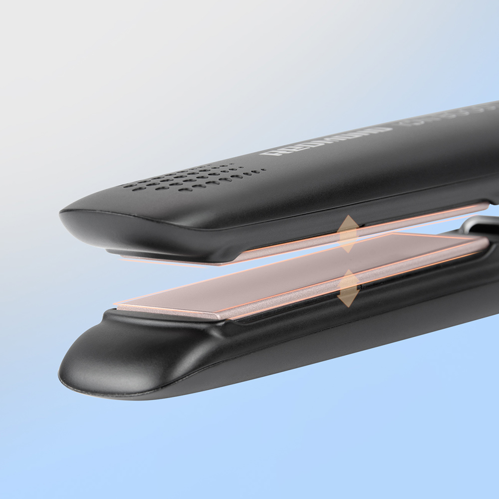 Выпрямитель для волос РЕДМОНД HS1716 — удобный прибор в черном цвете для создания аккуратной укладки каждый день. Он помогает быстро выпрямить волосы или придать им гладкость и блеск, не пересушивая. Благодаря ионизации волосы меньше пушатся и выглядят более ухоженными. Керамико-турмалиновое покрытие пластин обеспечивает равномерный нагрев и мягкое скольжение по прядям, а плавающая конструкция снижает риск повреждений. Понятный дисплей и широкий диапазон температур позволяют легко подобрать оптимальный режим для любого типа волос.
